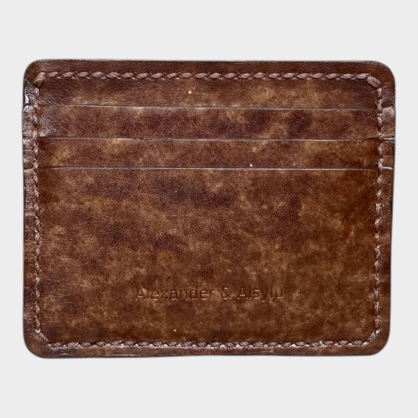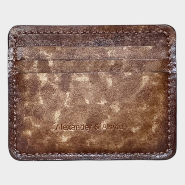 Картхолдер кожаный, коричневый "Болонья" ручной работы
