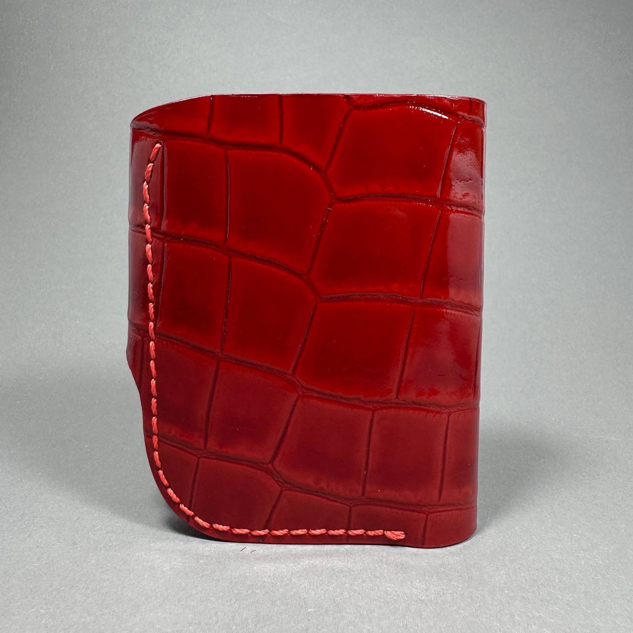 Женское портмоне «Passion» ручной работы из натуральной лакированной кожи (КРС) под аллигатора красного цвета, ручной шов