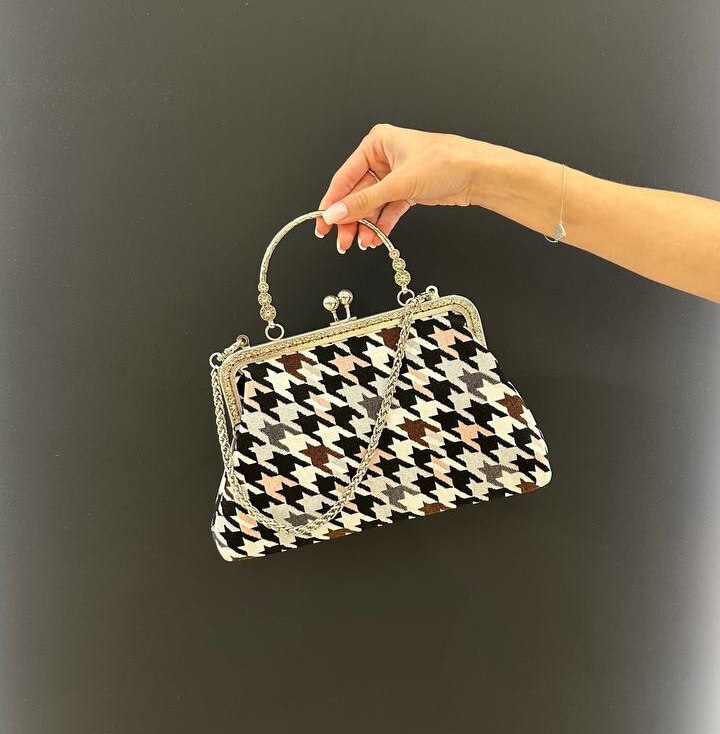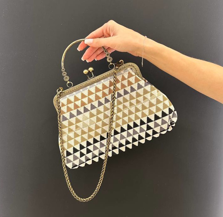 Женская сумка "Пирамиды" разноцветная из гобелена с фермуаром ручной работы