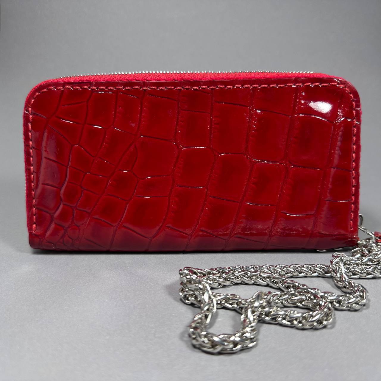Женский зиппер/клатч, портмоне «Passion» ручной работы из натуральной лакированной кожи (КРС) под аллигатора красного цвета