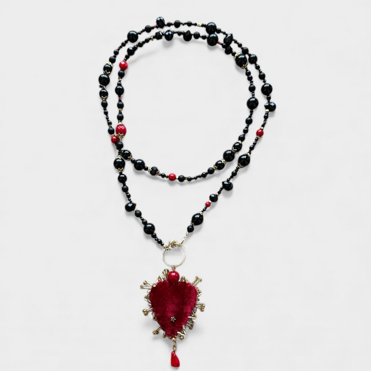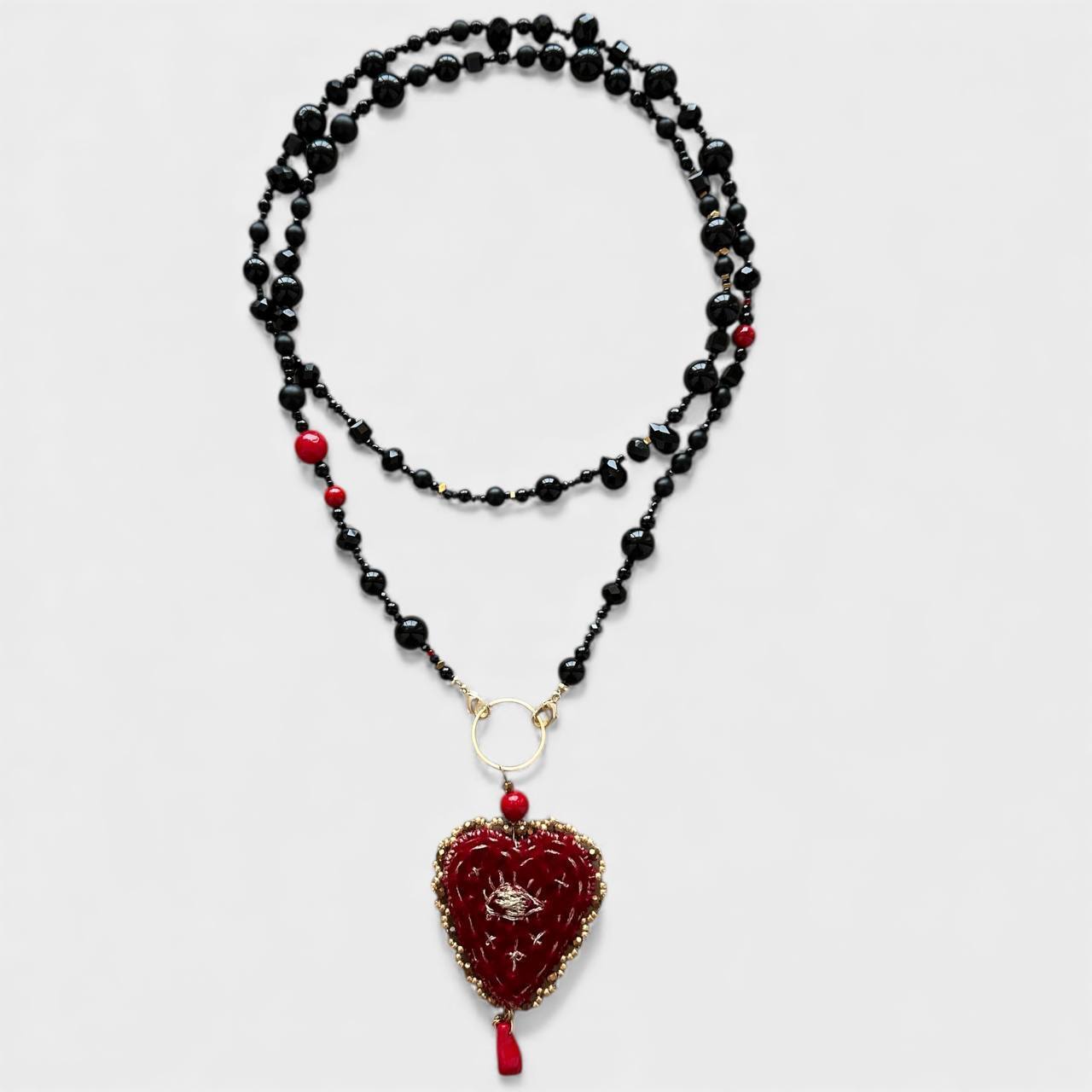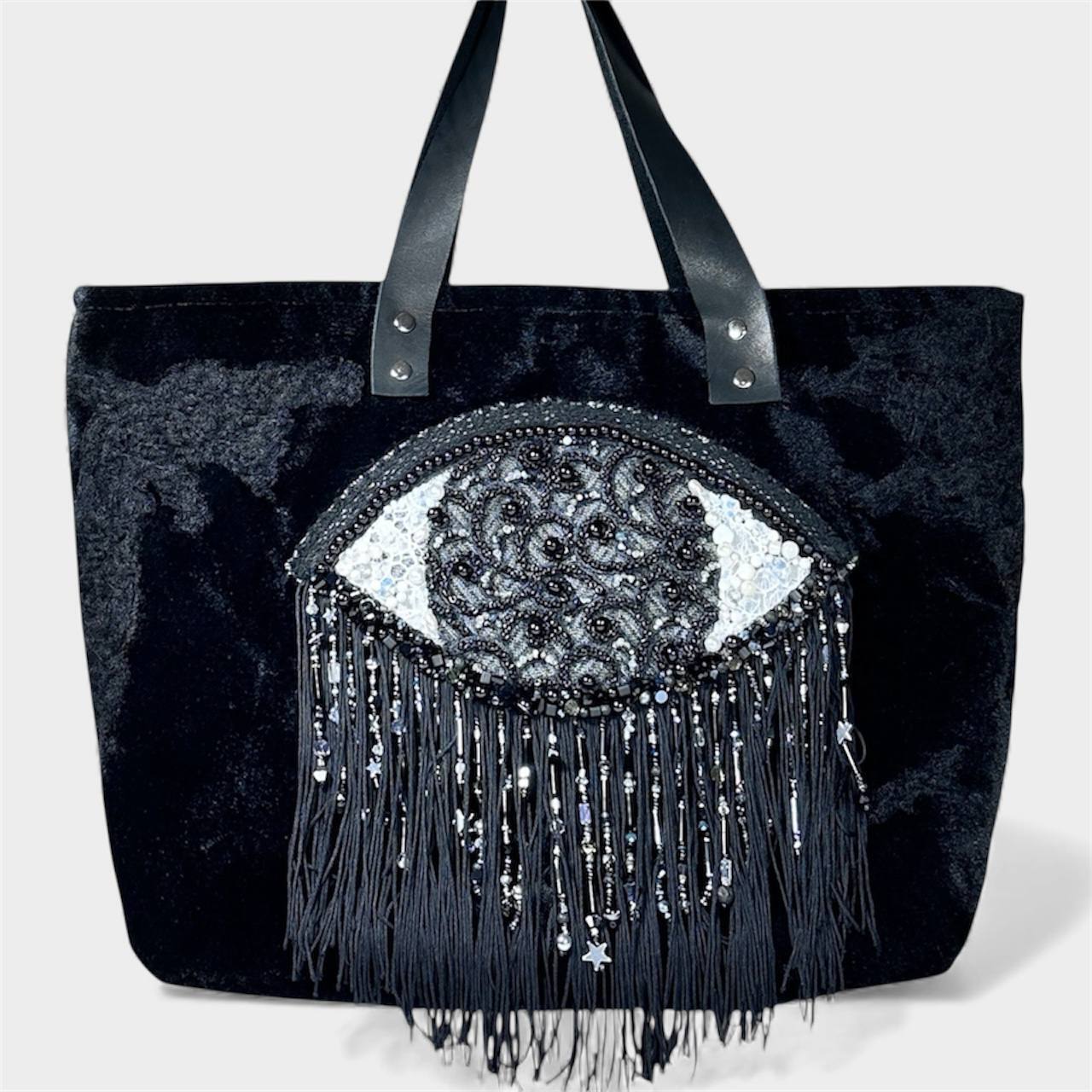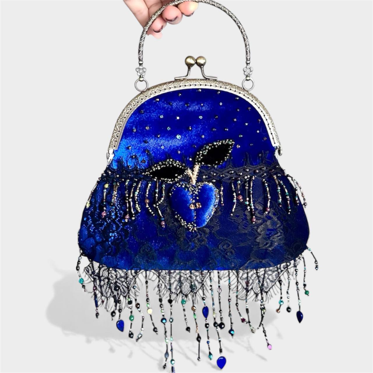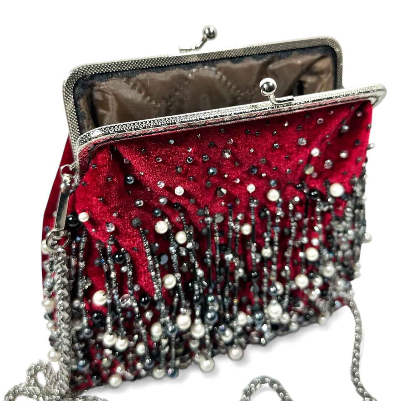 Женская сумка ручной работы "Chicago" из красного бархата с ручной вышивкой, бахрамой с фермуаром