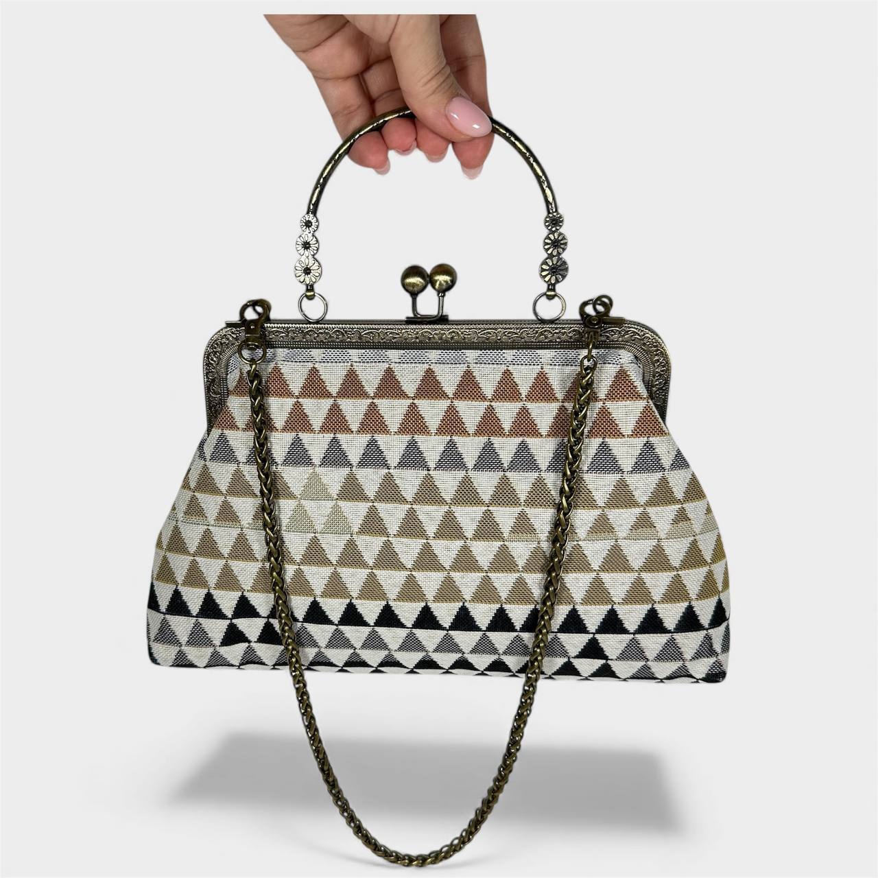 Женская сумка "Пирамиды" разноцветная из гобелена с фермуаром ручной работы