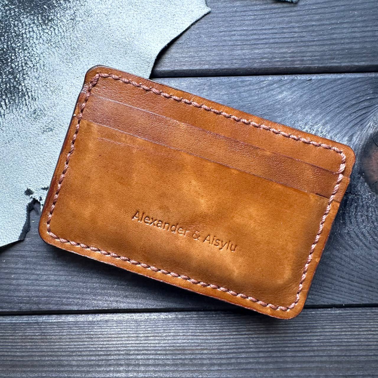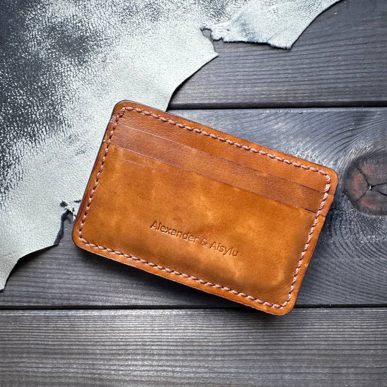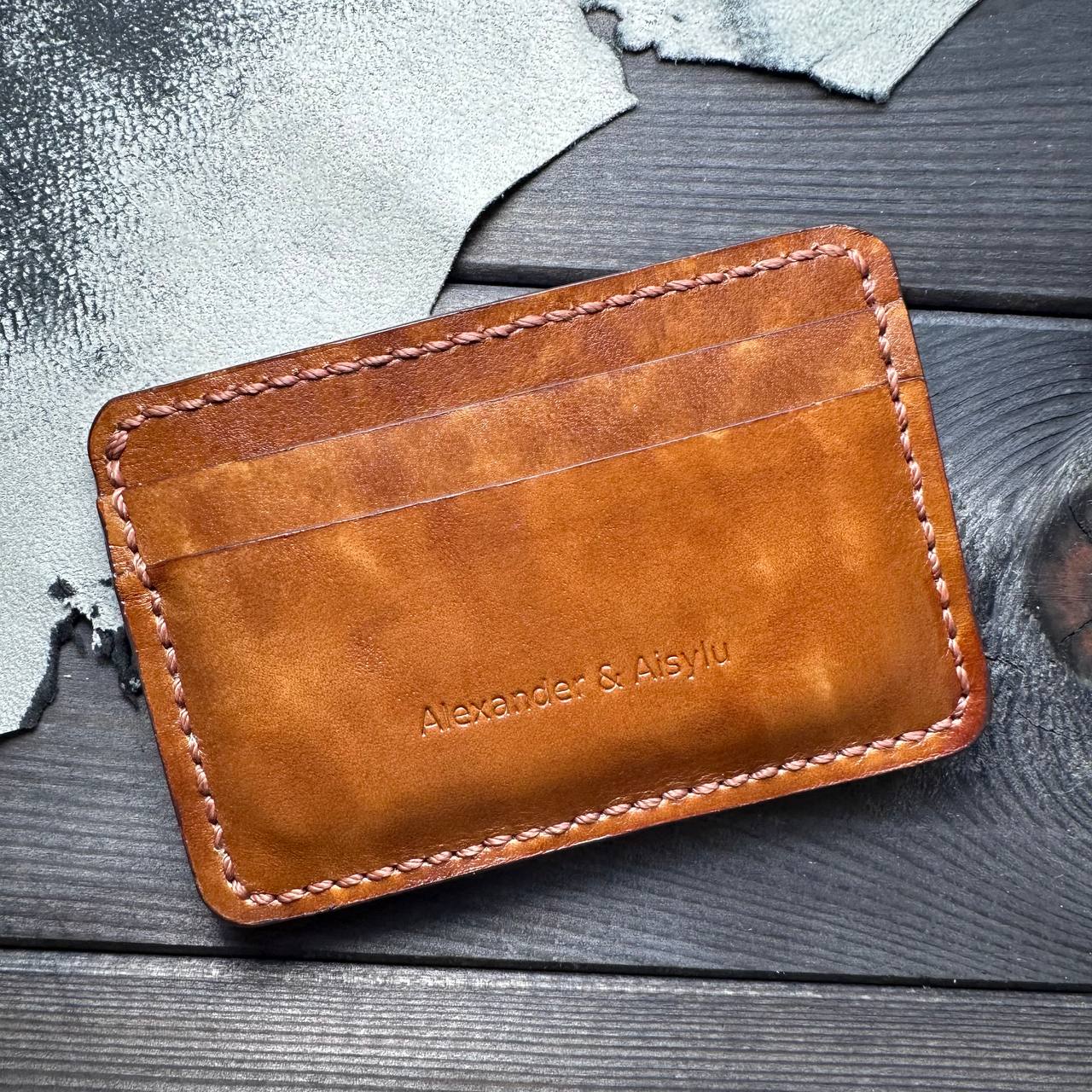 Картхолдер "Art line minimalistic max. Dark" - ручной работы из натуральной кожи (КРС), ручной шов
