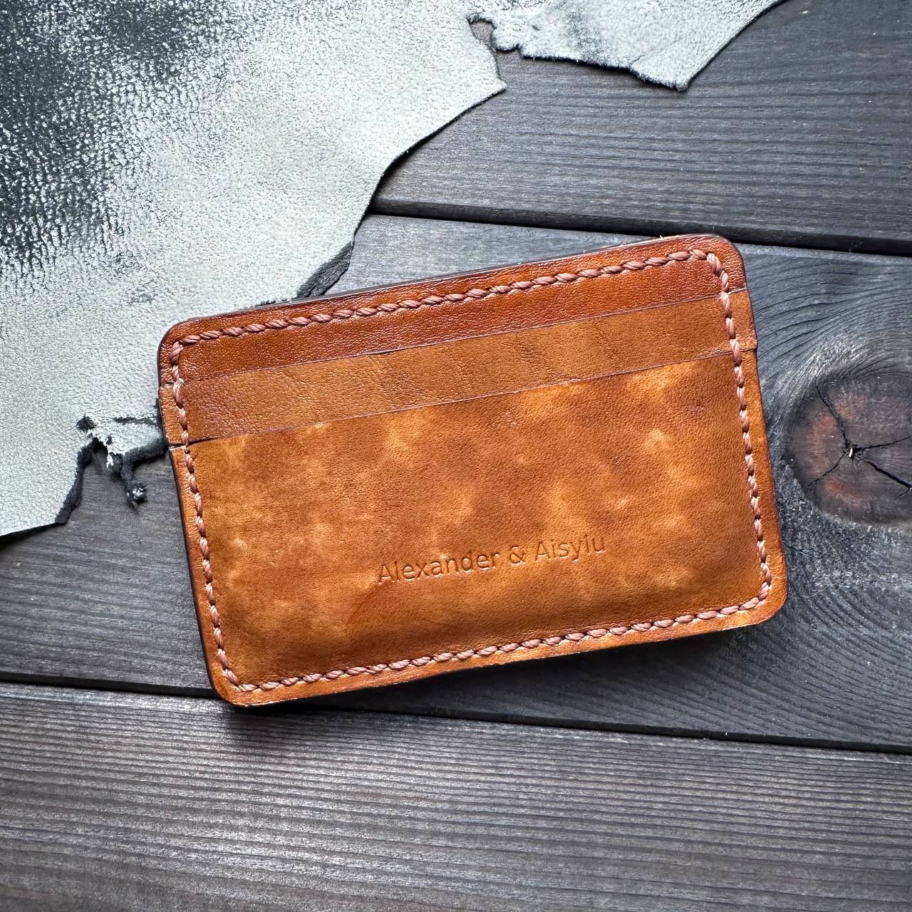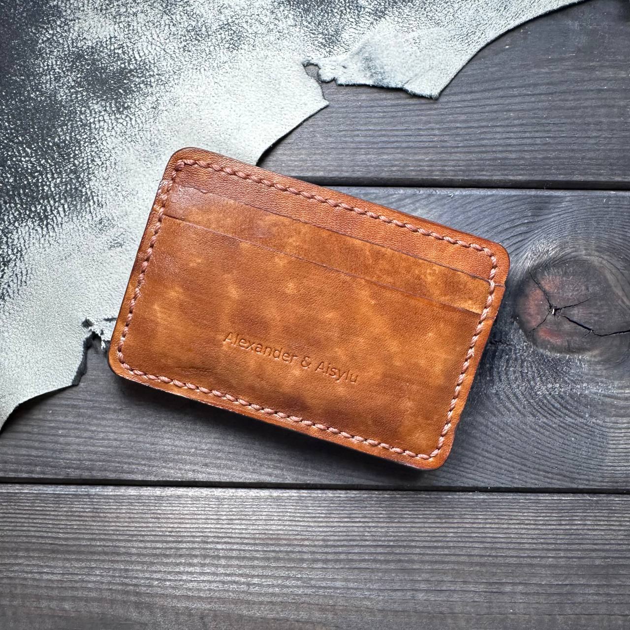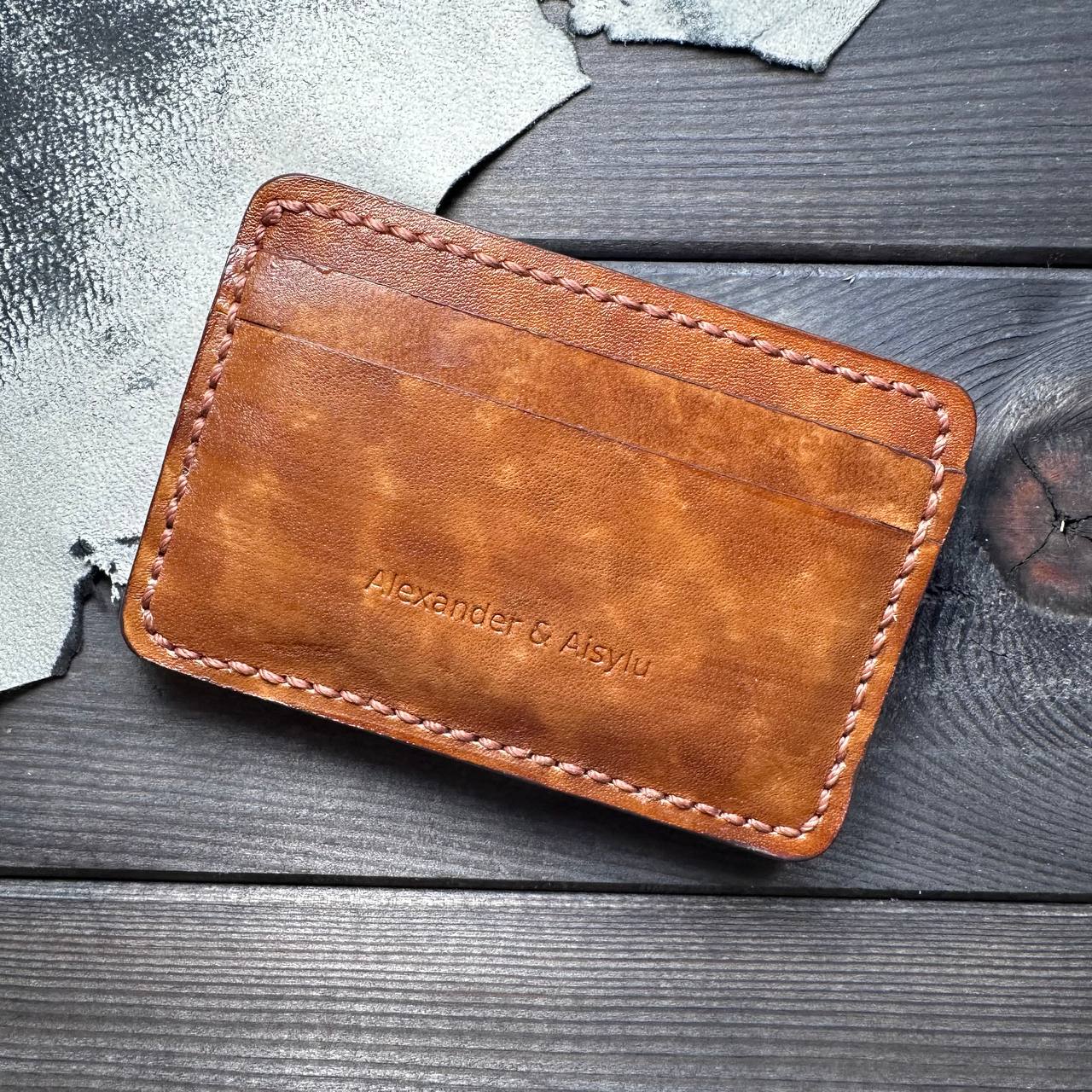 Картхолдер "Art line minimalistic max. Mixed" - ручной работы из натуральной кожи (КРС), ручной шов