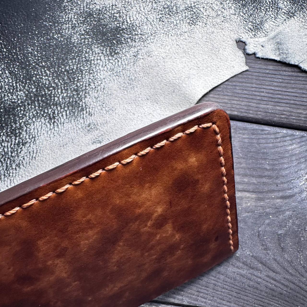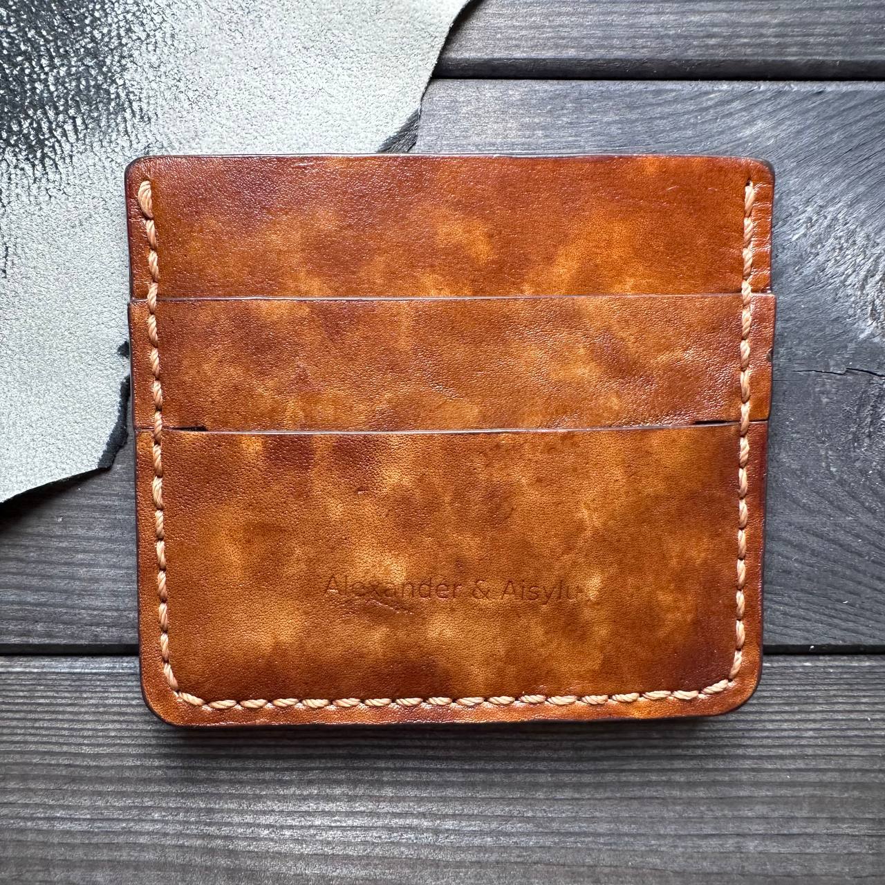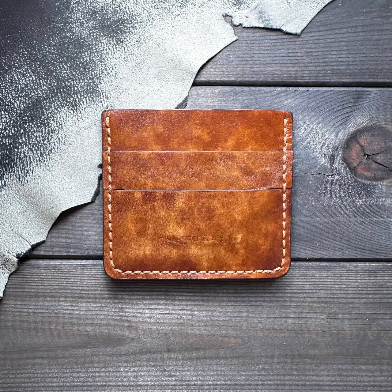 Картхолдер "Art line" мини - ручной работы из натуральной кожи (КРС) коричневого цвета ручной покраски, ручной шов