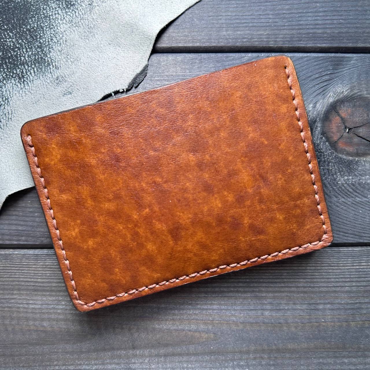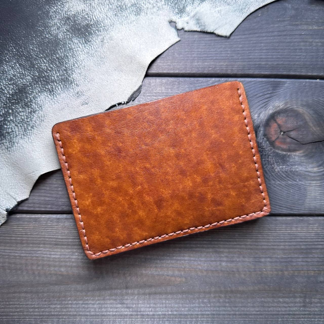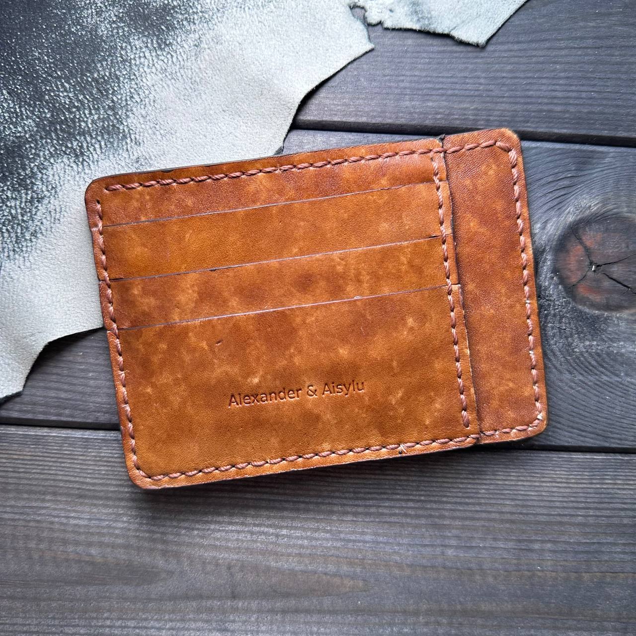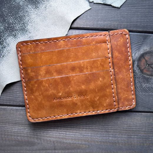 Картхолдер "Art line. Dark" - ручной работы из натуральной кожи (КРС) светло - коричневого цвета ручной покраски, ручной шов