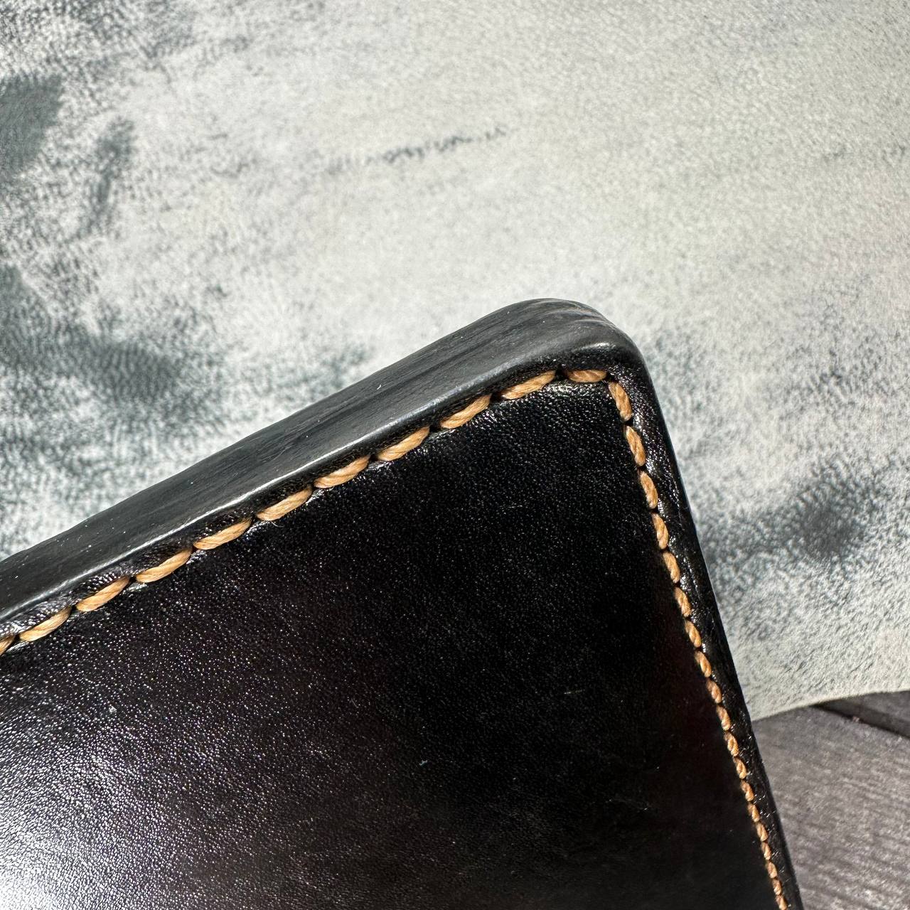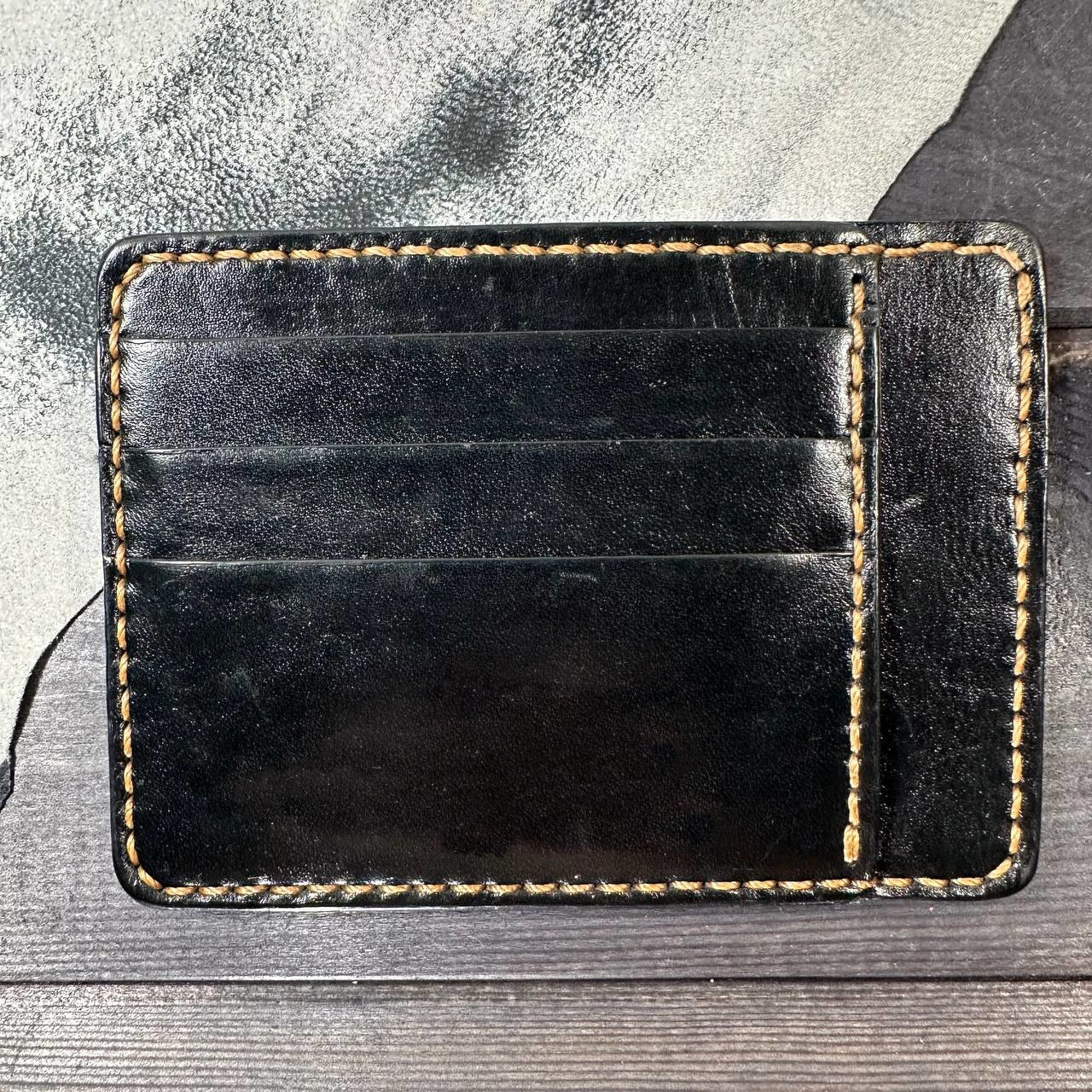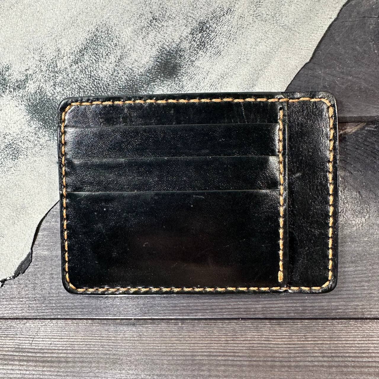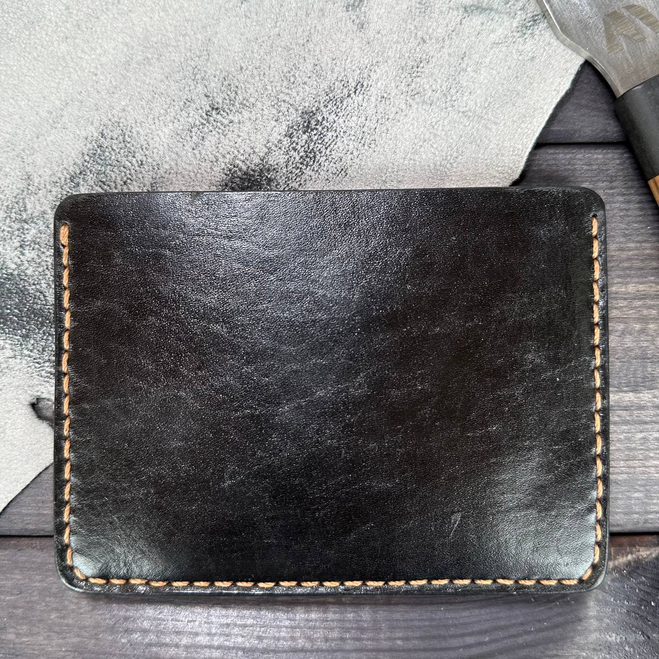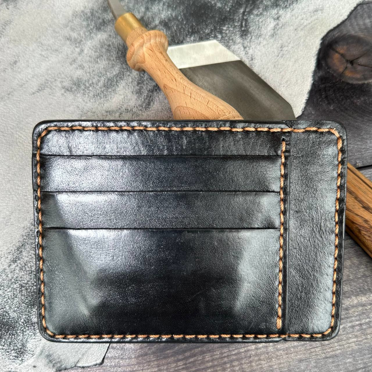 Картхолдер "Buffalo" - ручной работы из натуральной кожи (КРС), черного цвета, ручной шов с коричневой строчкой