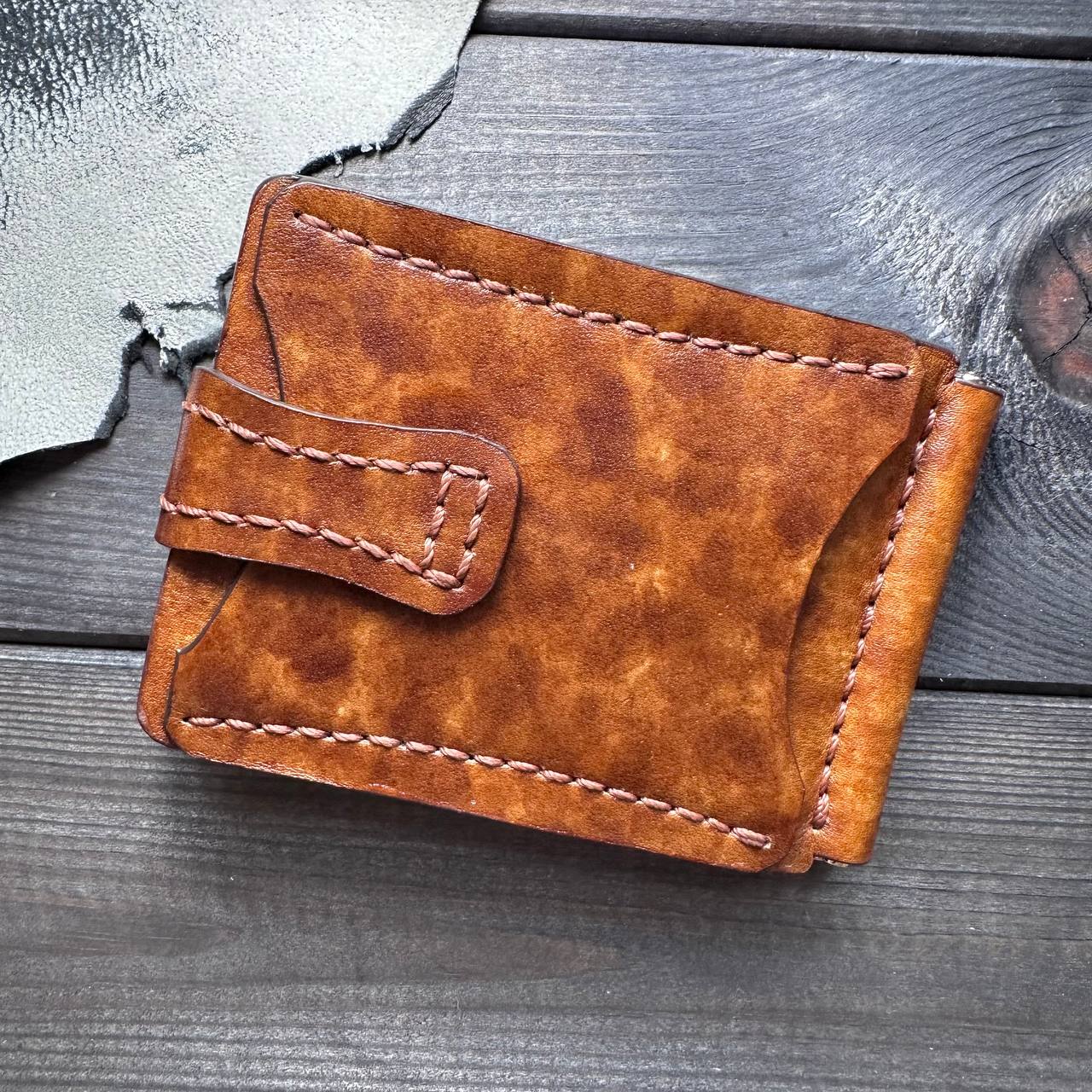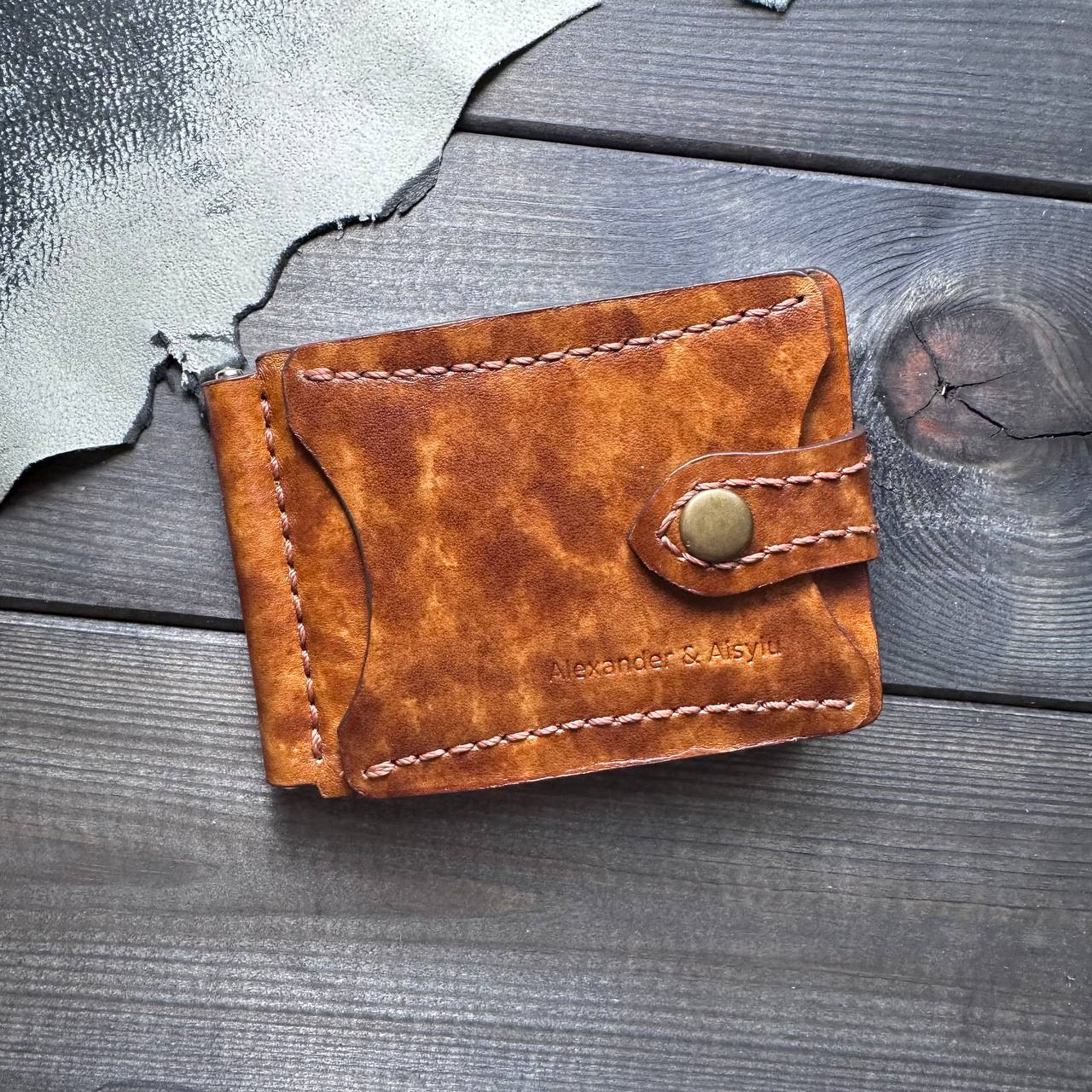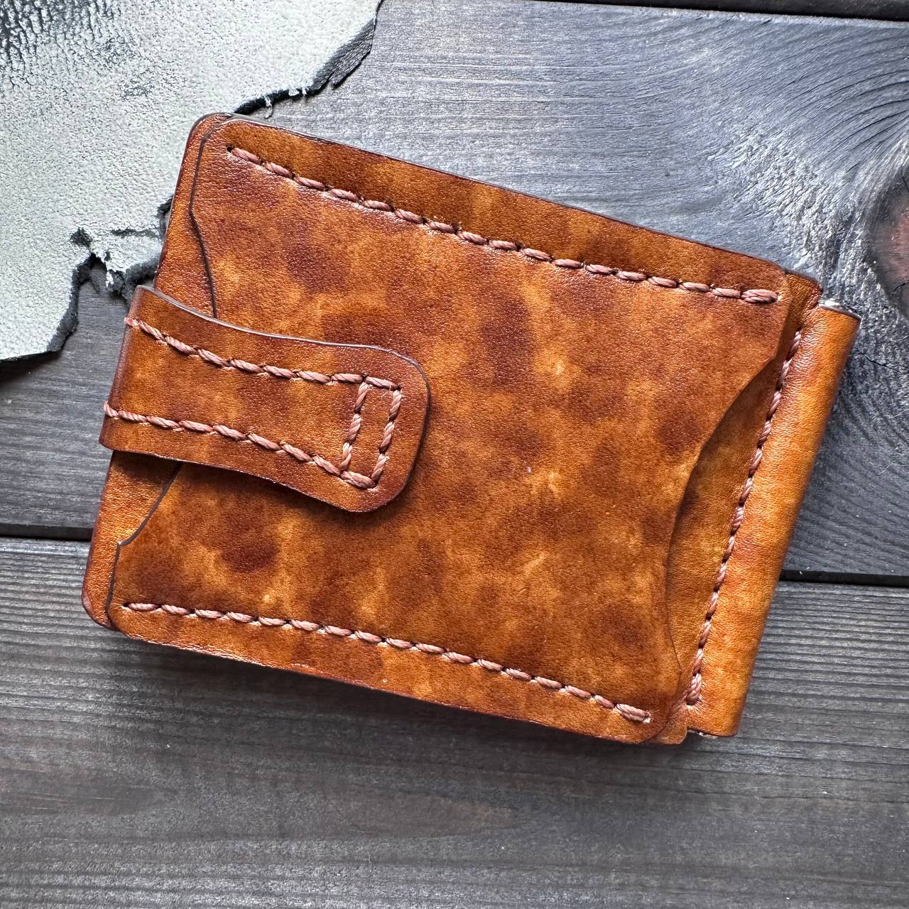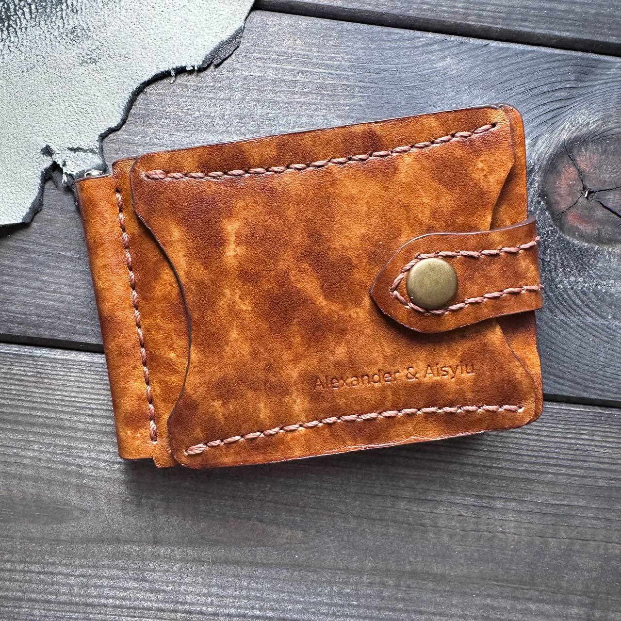 Мужской зажим для денег "Presidio. Max 2" из натуральной кожи (КРС) ручной работы, ручной шов