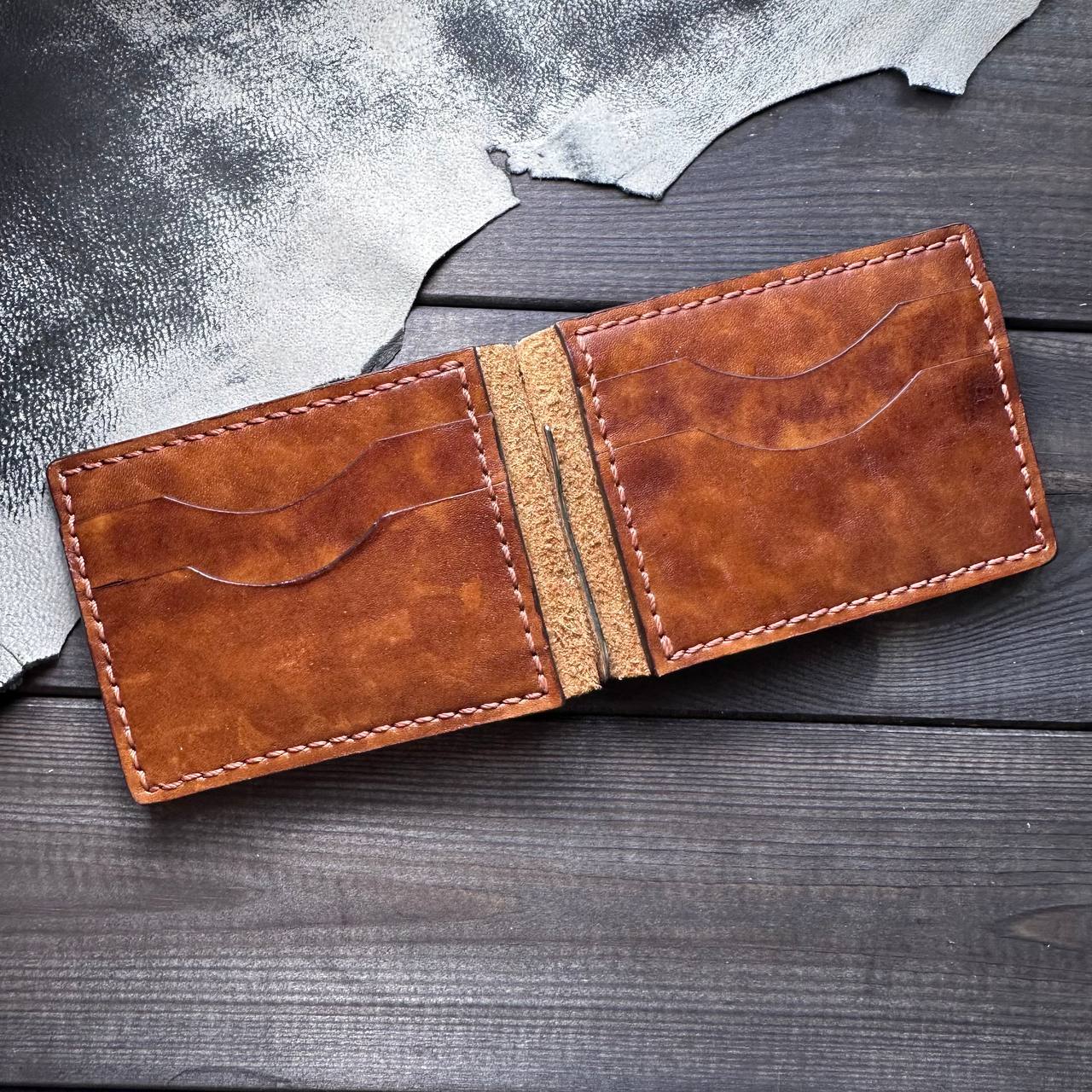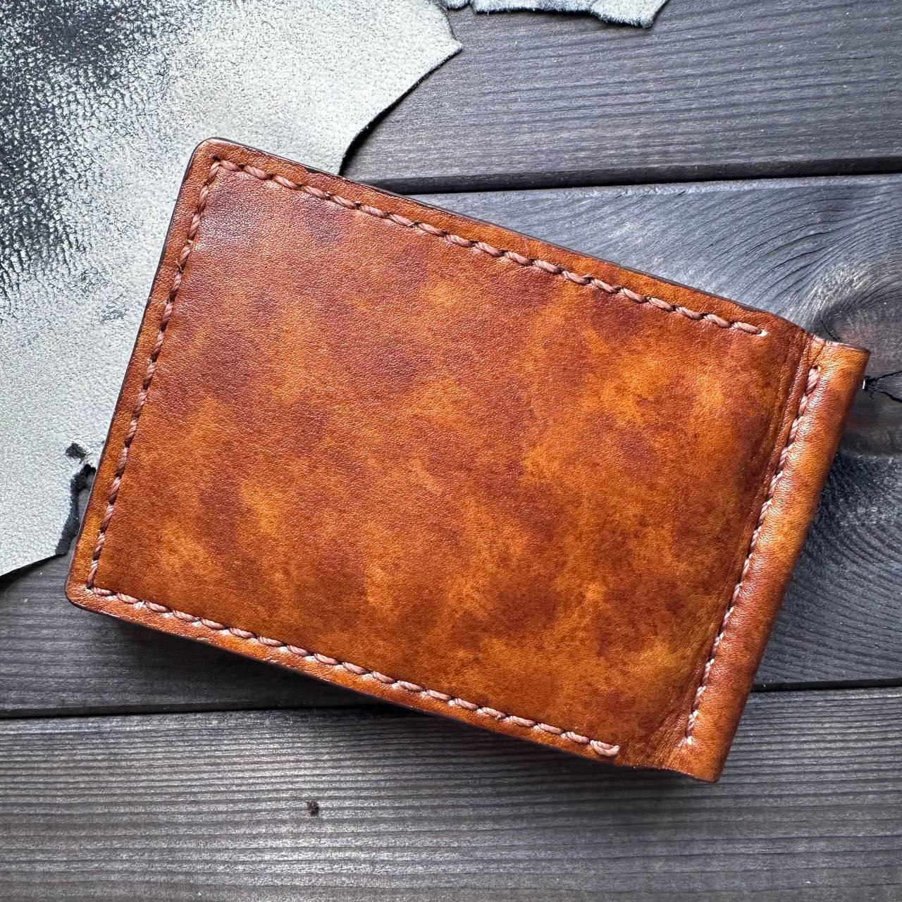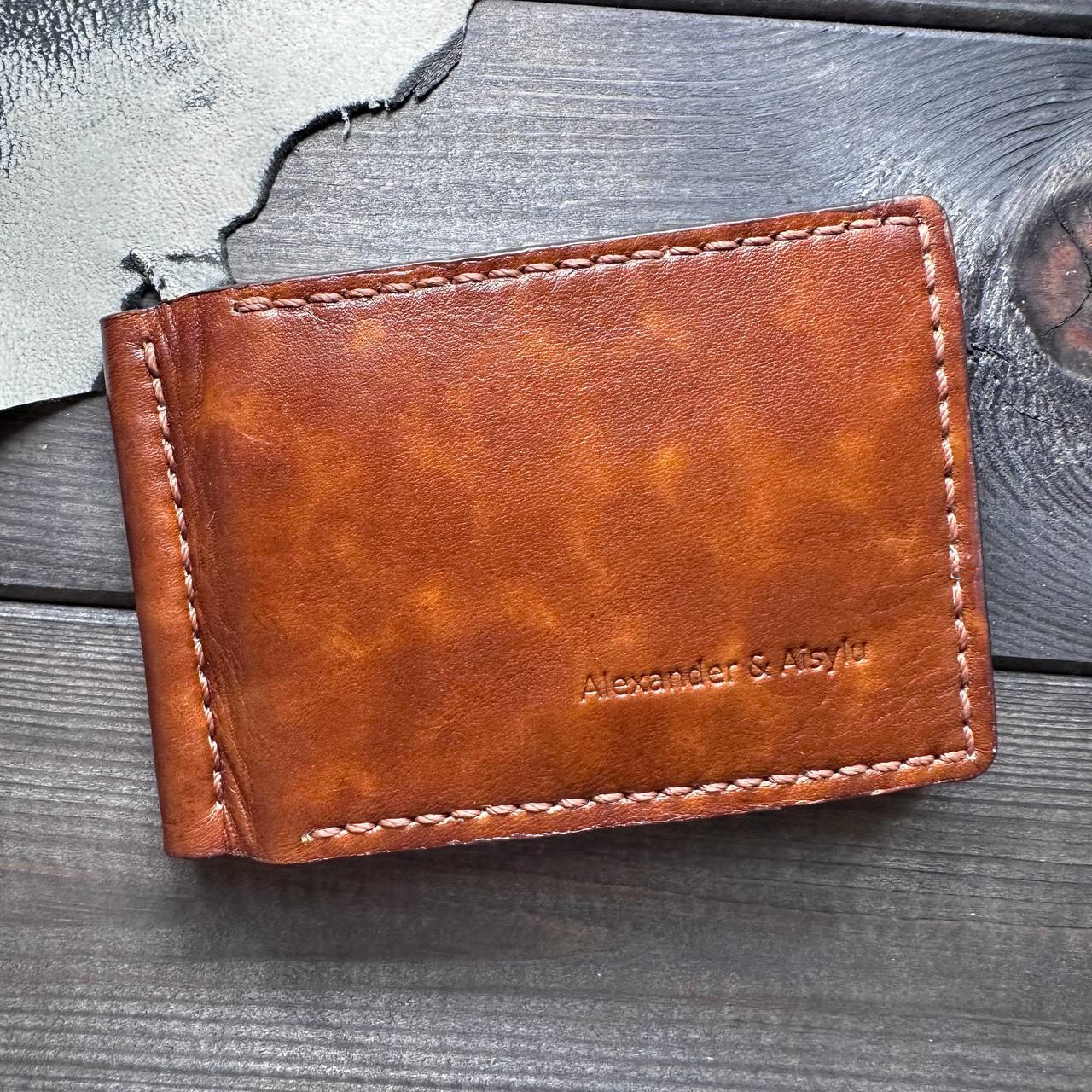 Мужской зажим для денег "Stronghold 3" из натуральной кожи (КРС) ручной работы, ручной шов