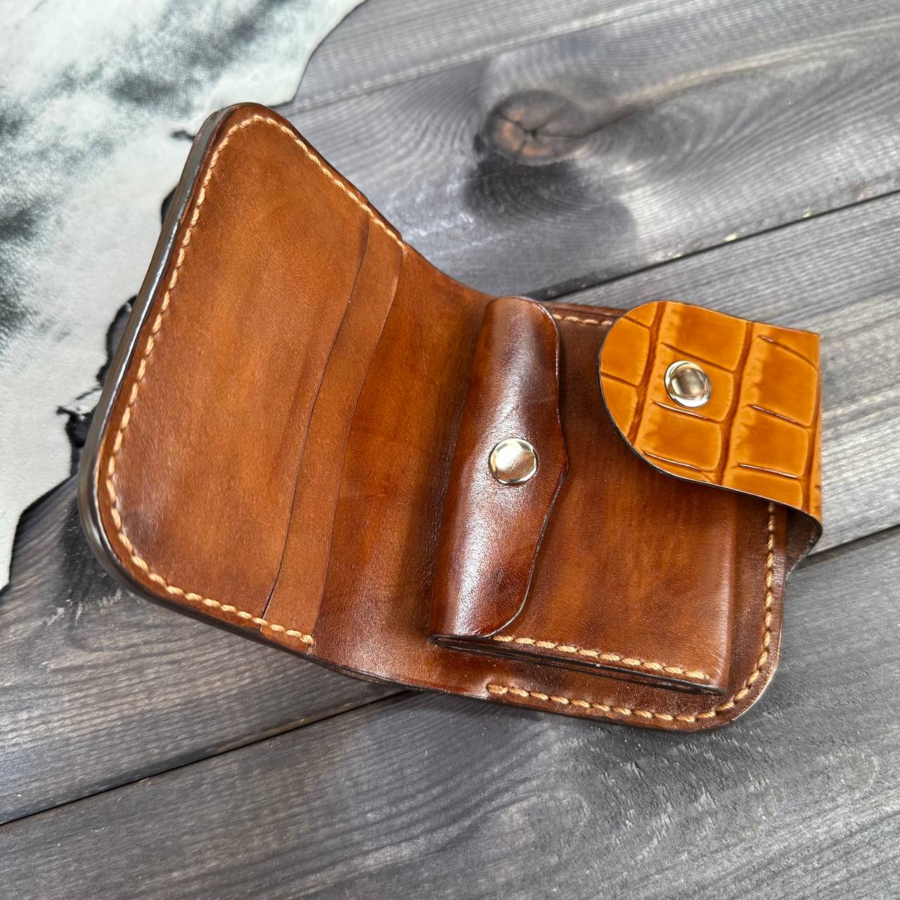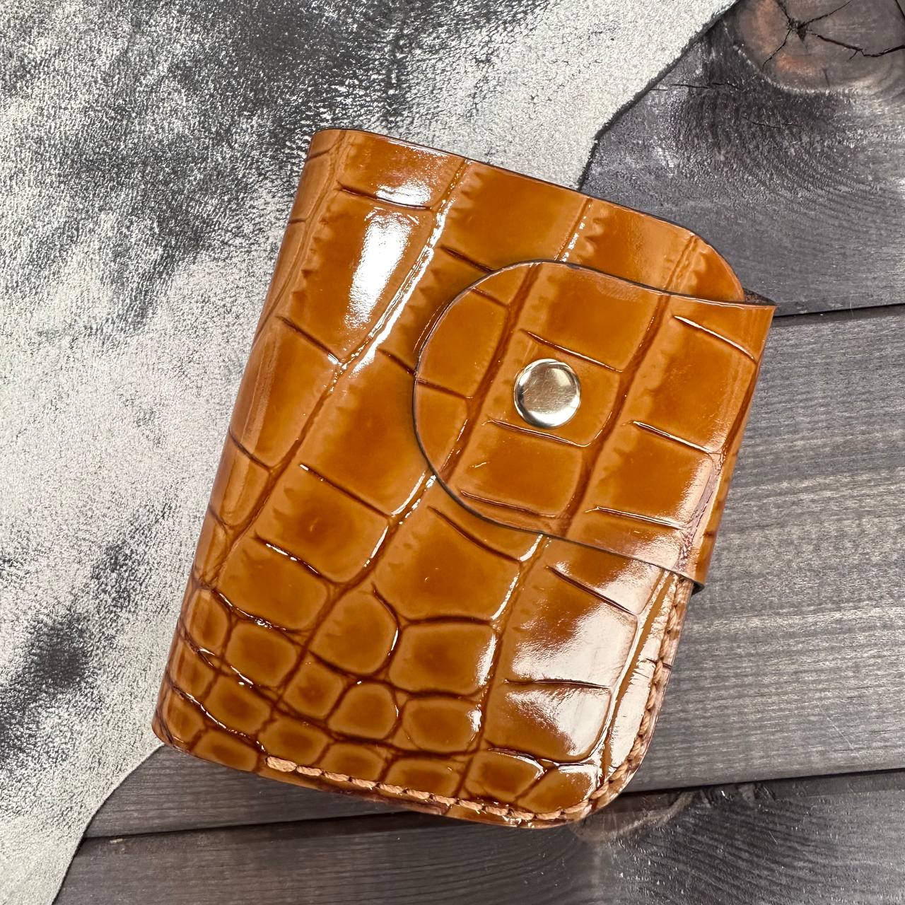 Женское портмоне «Style. Passion» ручной работы из натуральной лакированной кожи (КРС) под аллигатора, ручной шов