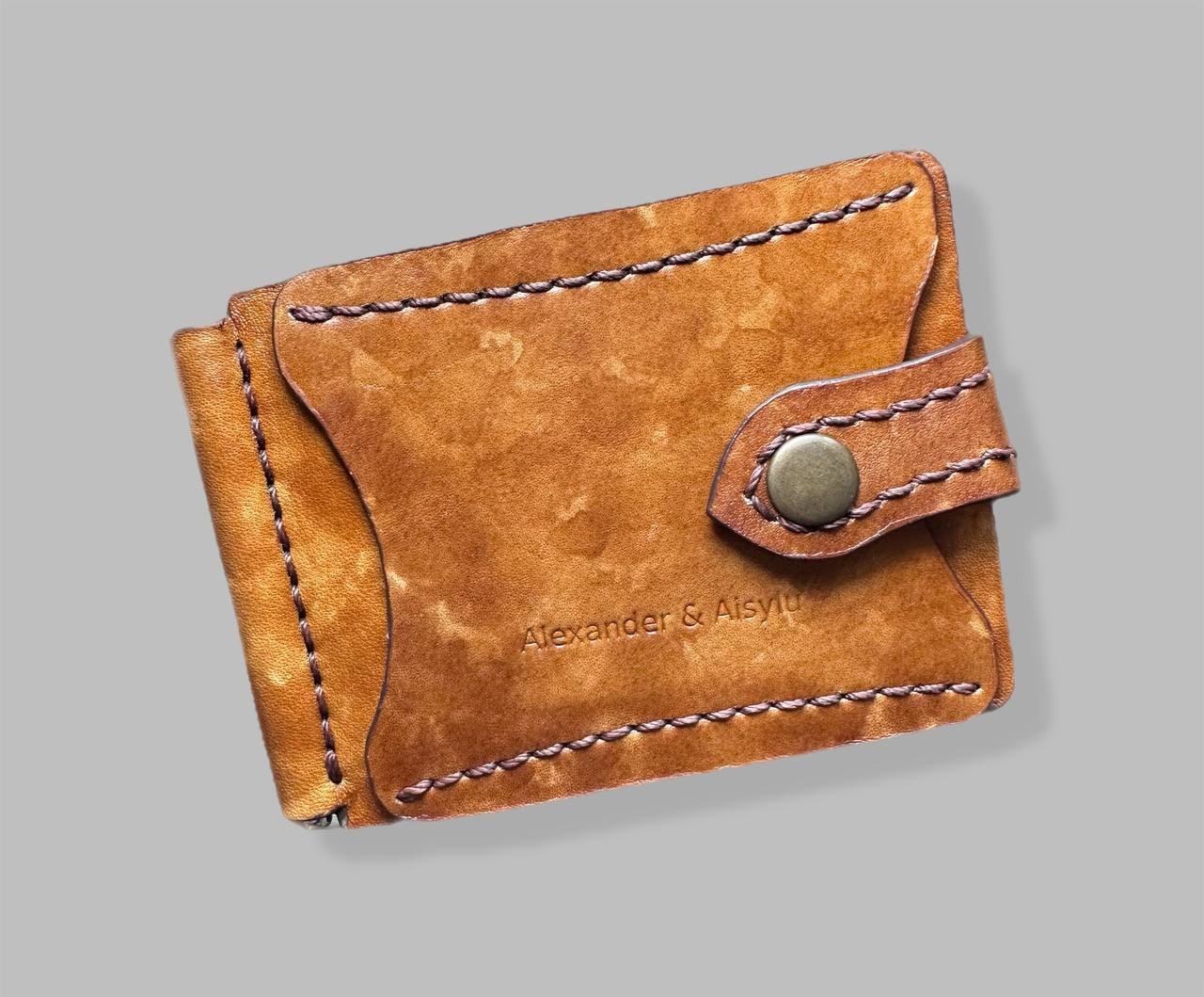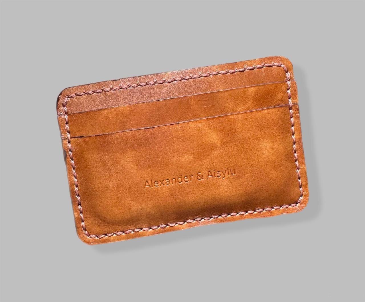 Картхолдер коричневый "Art line minimalistic max. Light" - ручной работы из натуральной кожи (КРС), ручной шов