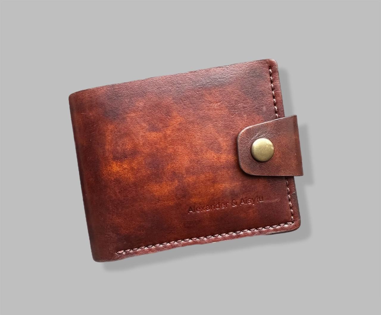 Мужское коричневое портмоне, кошелек "Brutal man. Max" - ручной работы из натуральной кожи (КРС), ручной шов