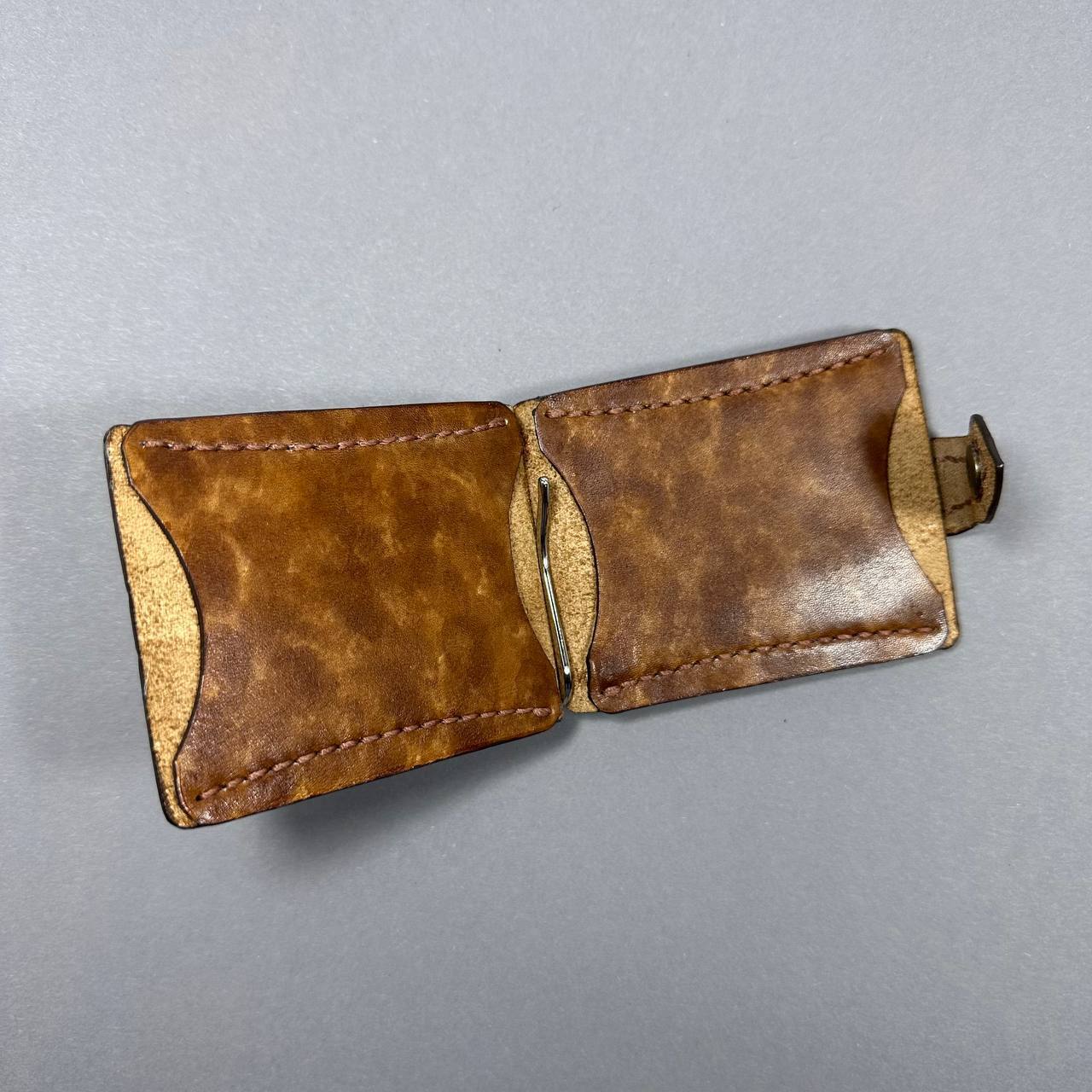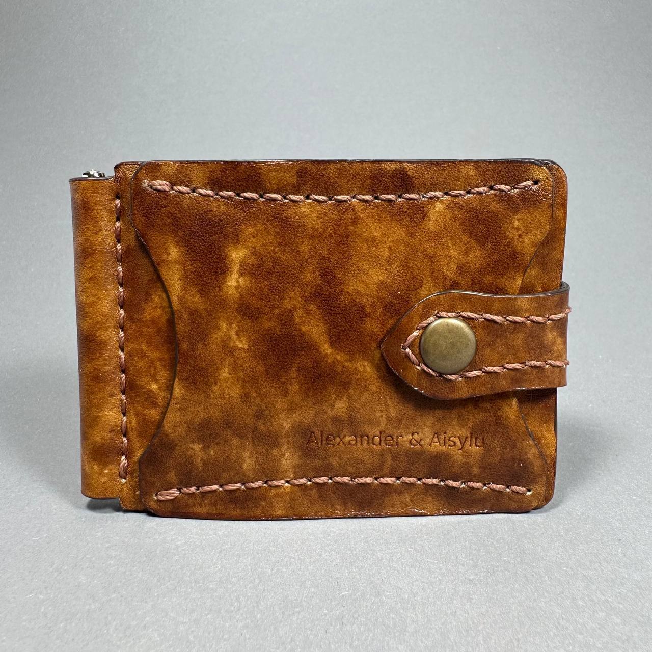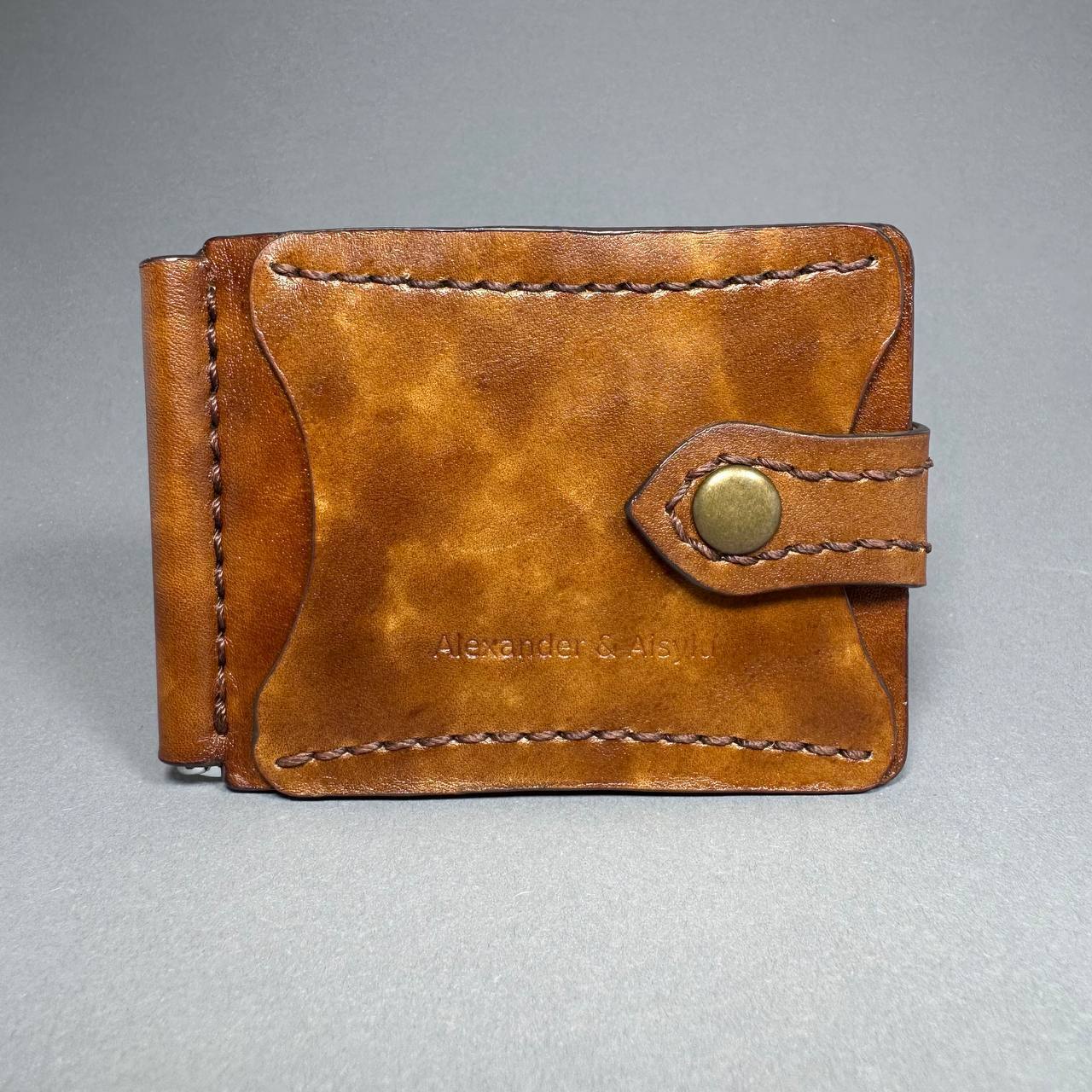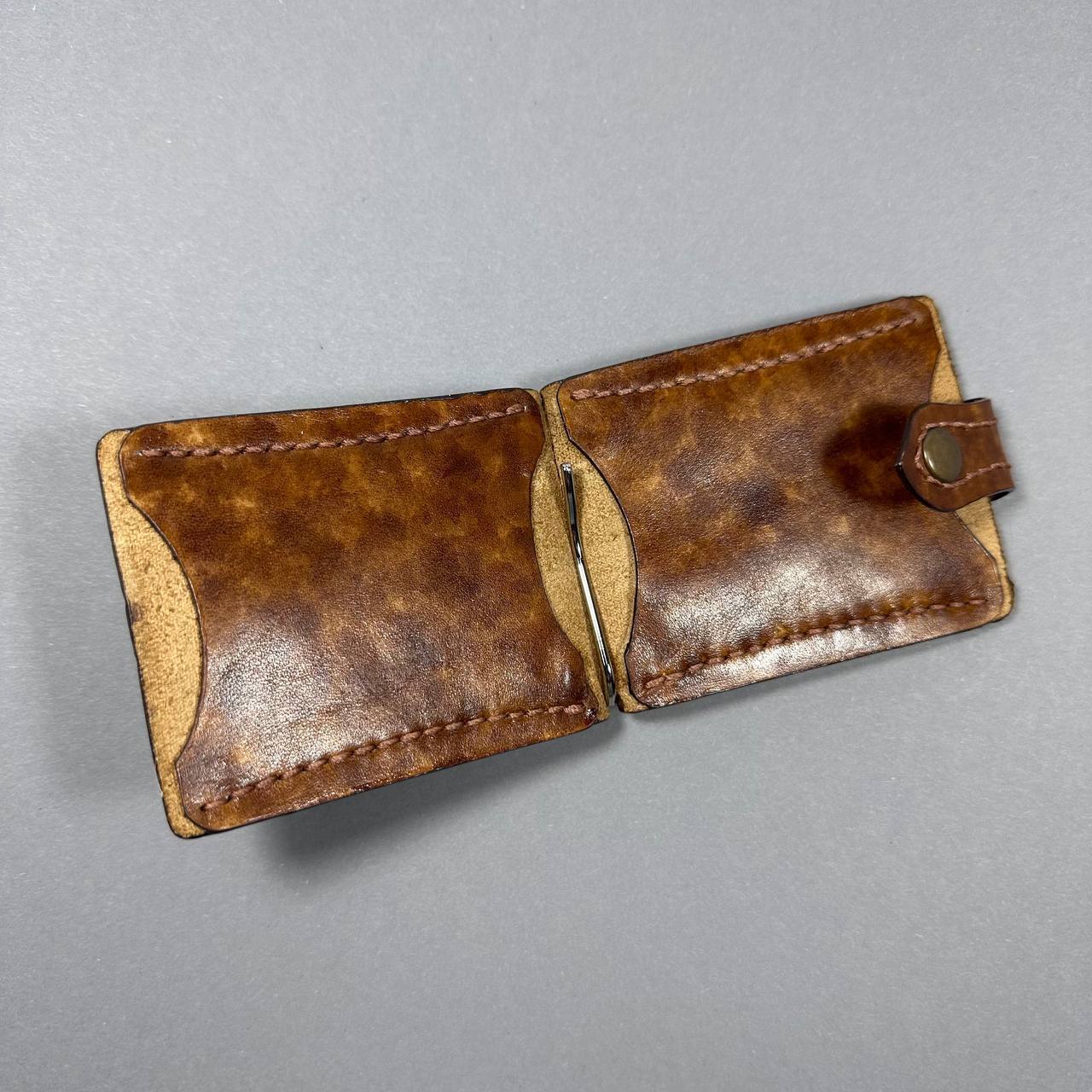 Мужской зажим для денег коричневый "Presidio. Max 1" из натуральной кожи (КРС) ручной работы, ручной шов
