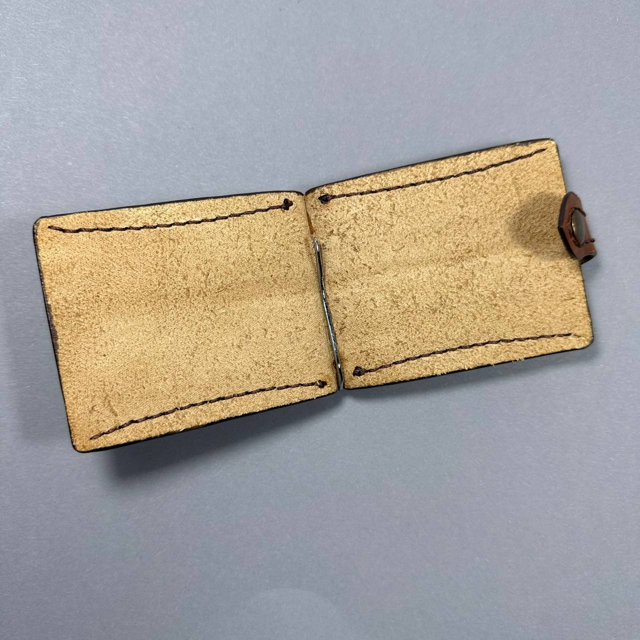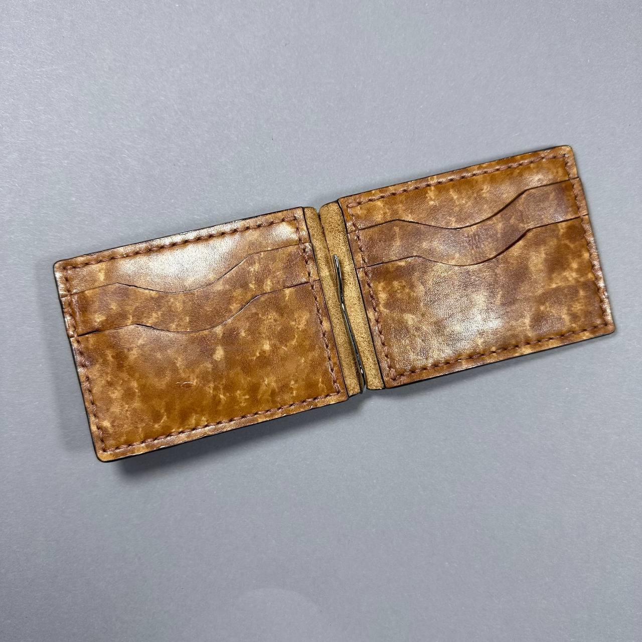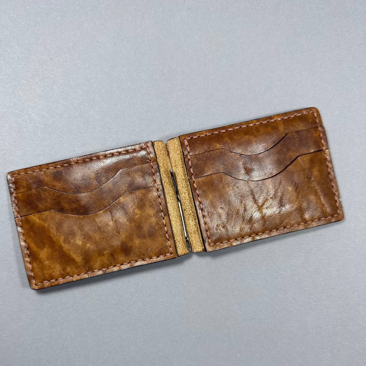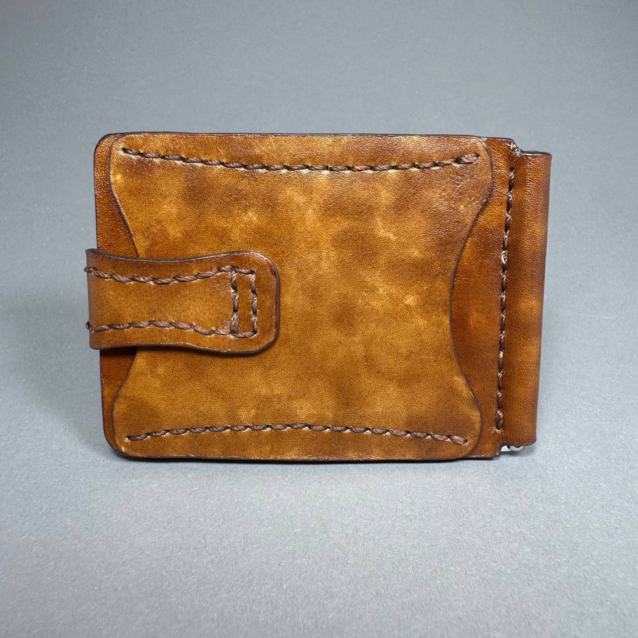 Мужской зажим для денег коричневый "Presidio. Max 1" из натуральной кожи (КРС) ручной работы, ручной шов