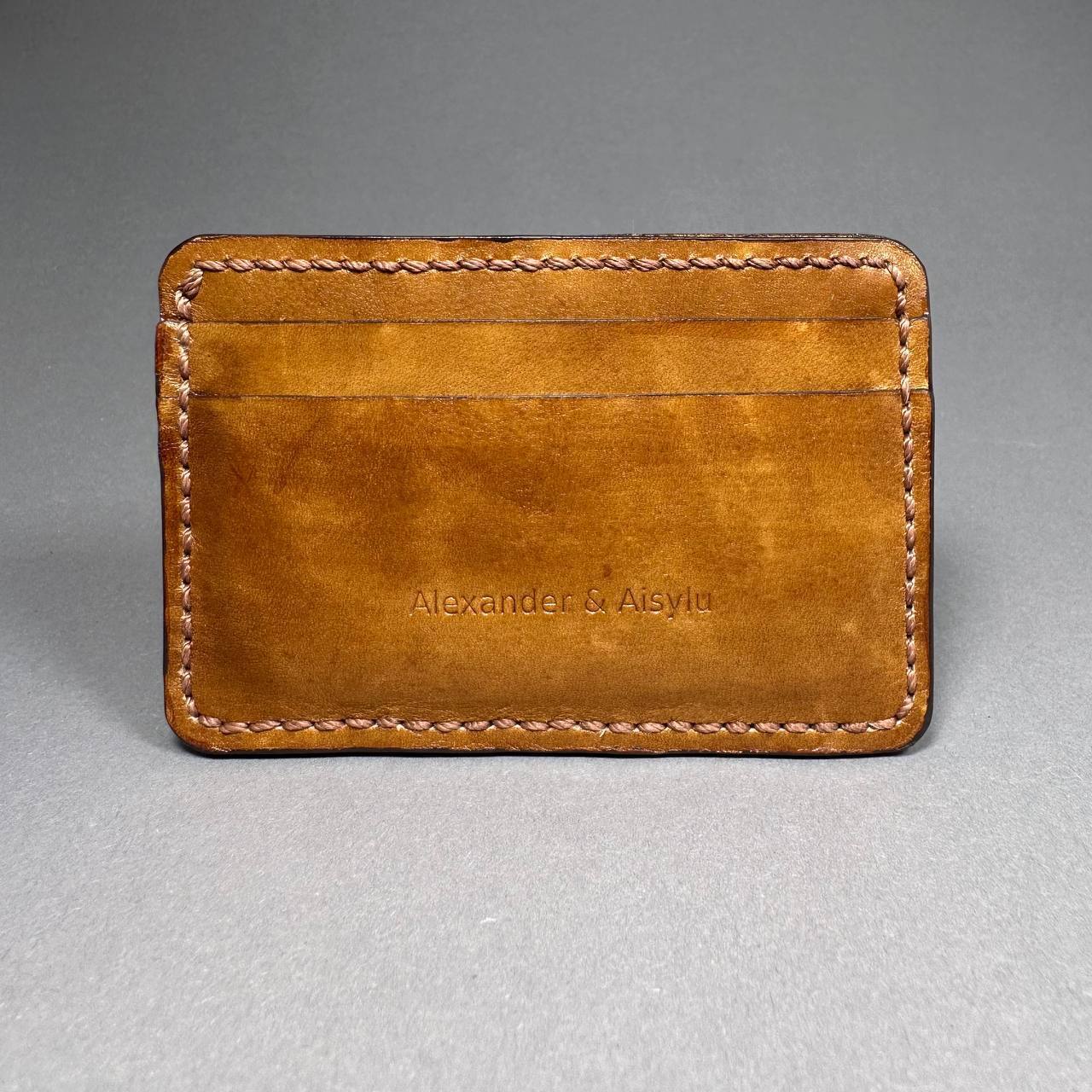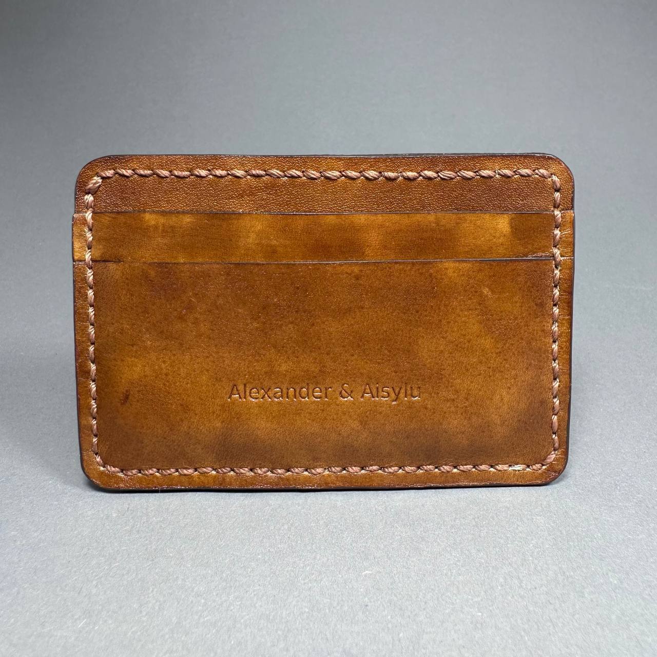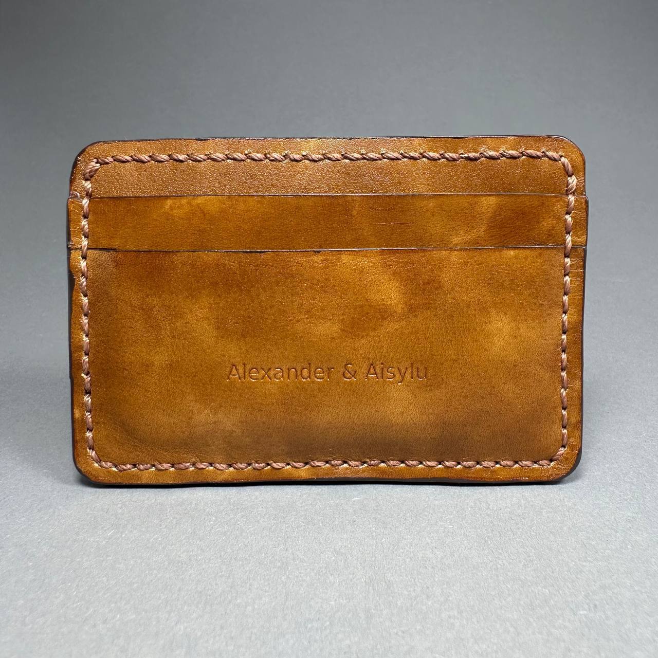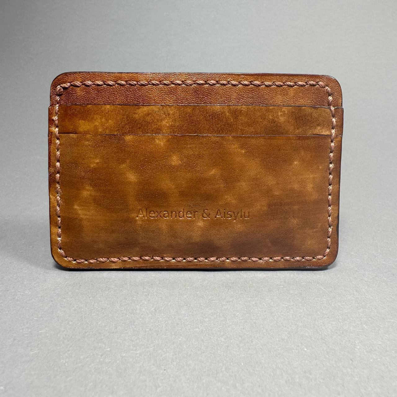 Картхолдер коричневый "Art line minimalistic max. Light" - ручной работы из натуральной кожи (КРС), ручной шов