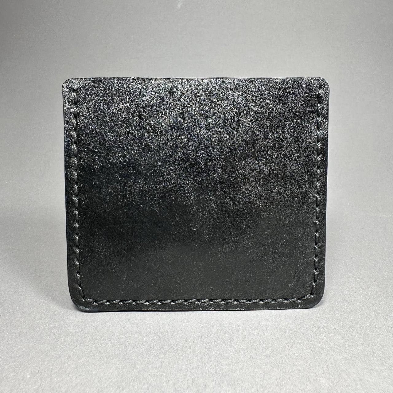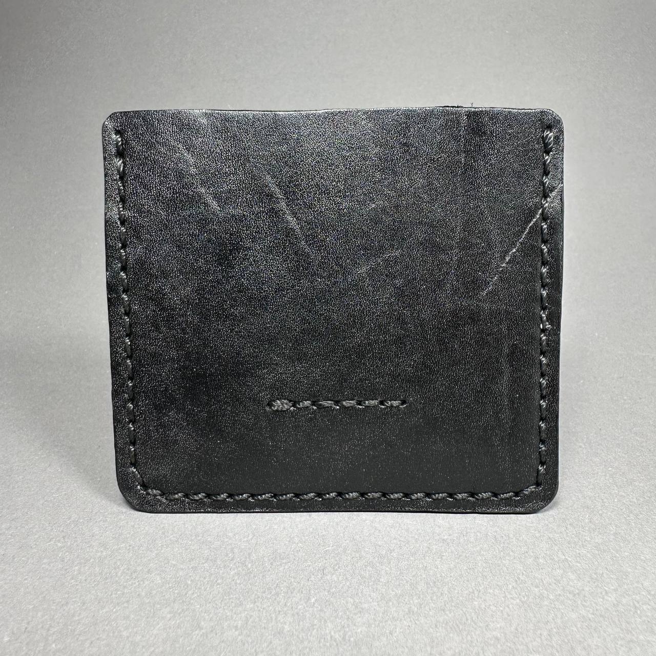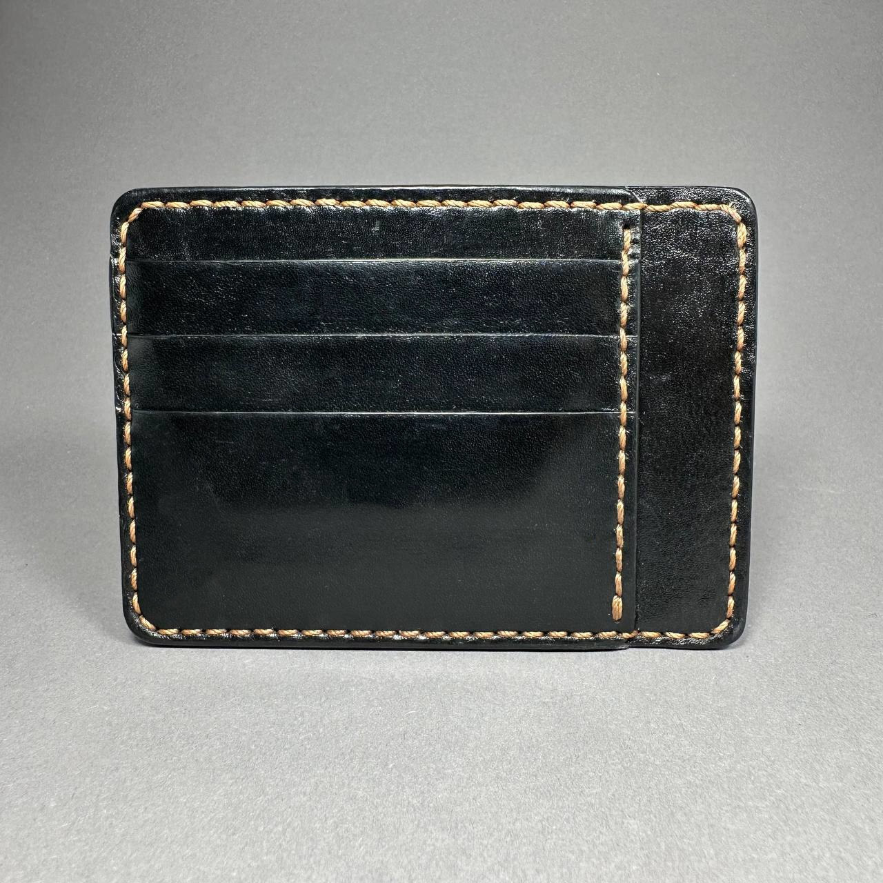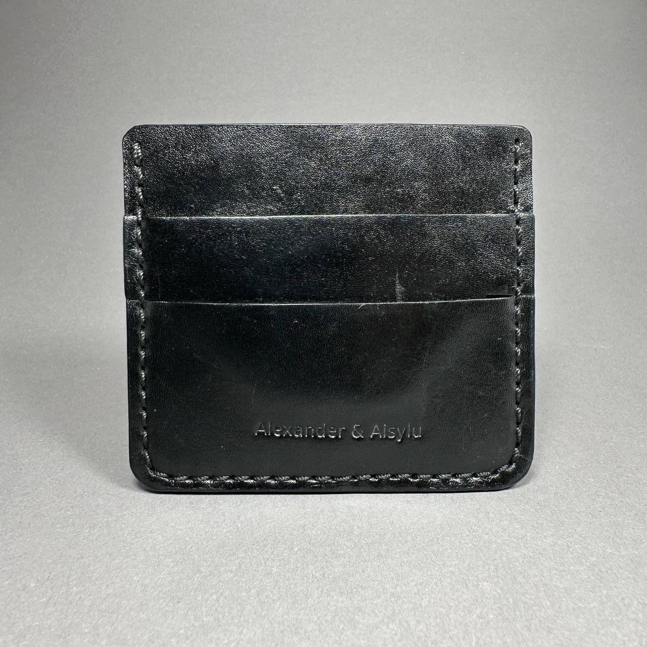 Картхолдер черный "Buffalo" мини - ручной работы из натуральной кожи (КРС) с кармашком для купюр, ручной шов