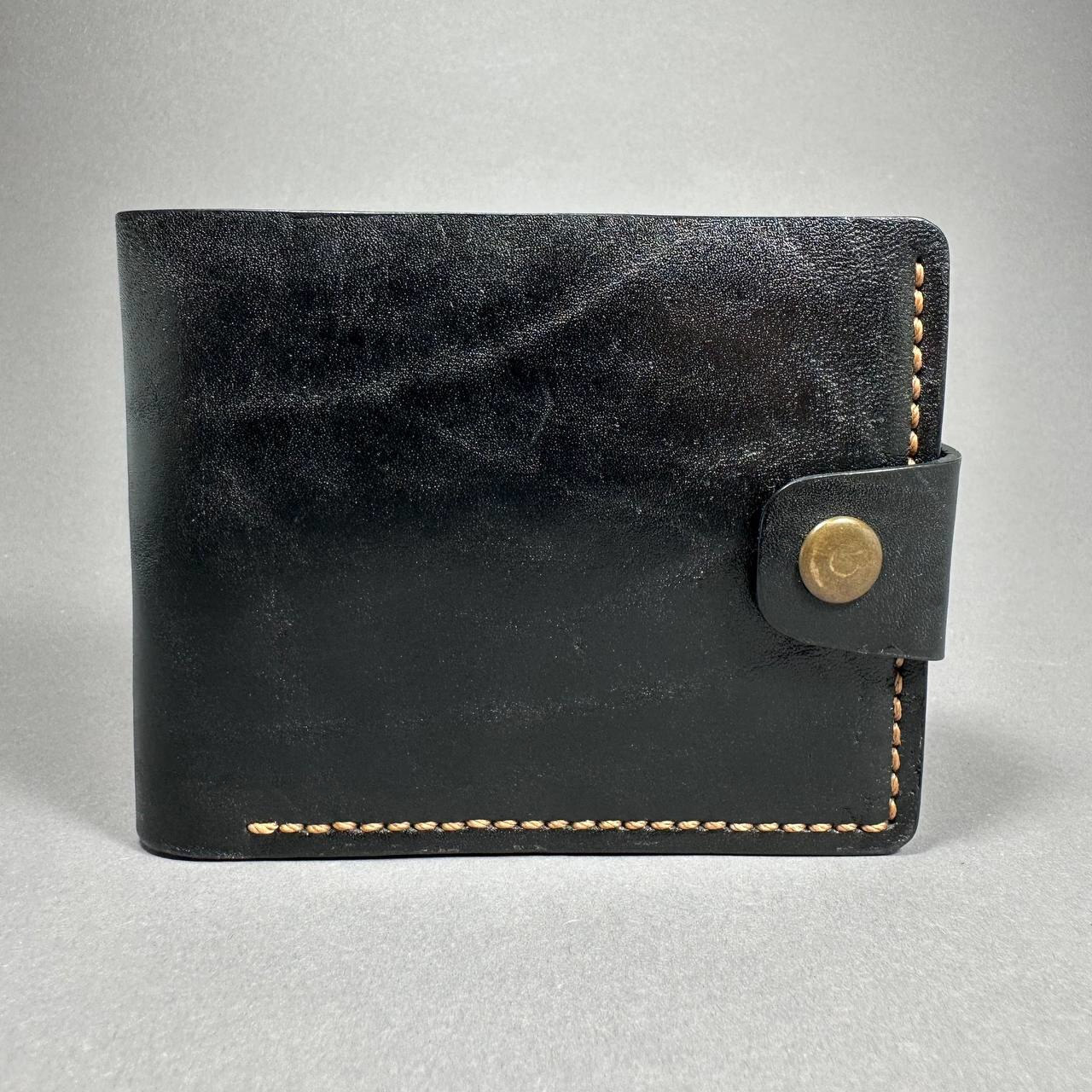 Мужское портмоне "Buffalo" - ручной работы из натуральной кожи (КРС) черного цвета, ручной шов