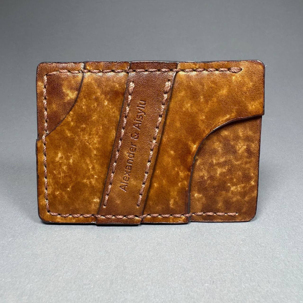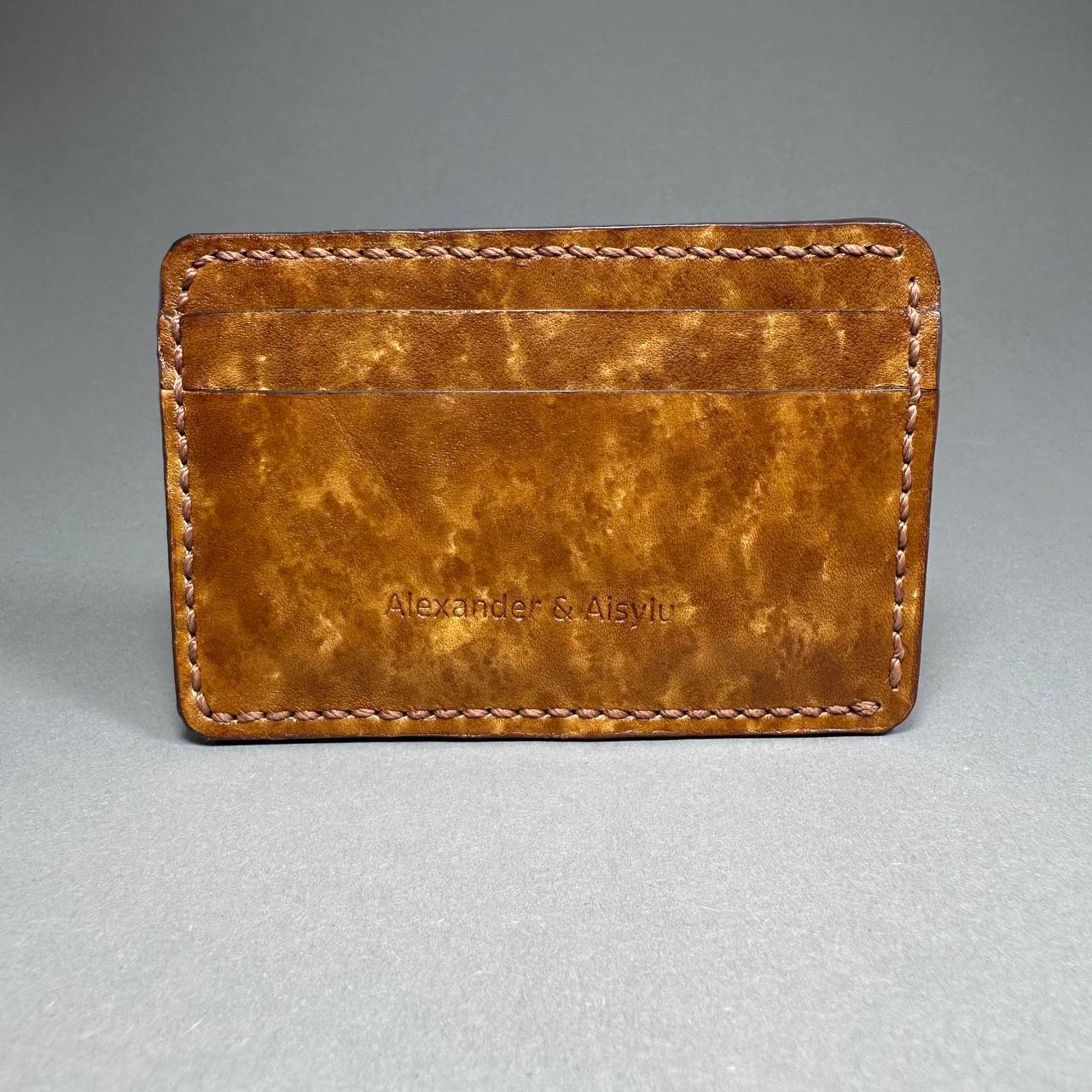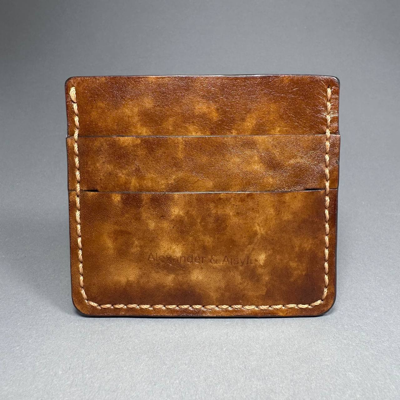 Картхолдер коричневый "Art line minimalistic max. Mixed" - ручной работы из натуральной кожи (КРС), ручной шов