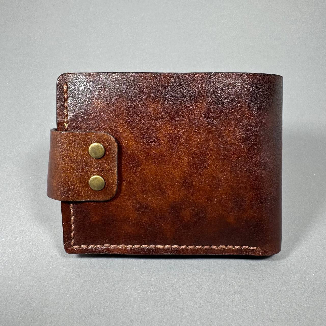 Мужское коричневое портмоне, кошелек "Brutal man. Max" - ручной работы из натуральной кожи (КРС), ручной шов
