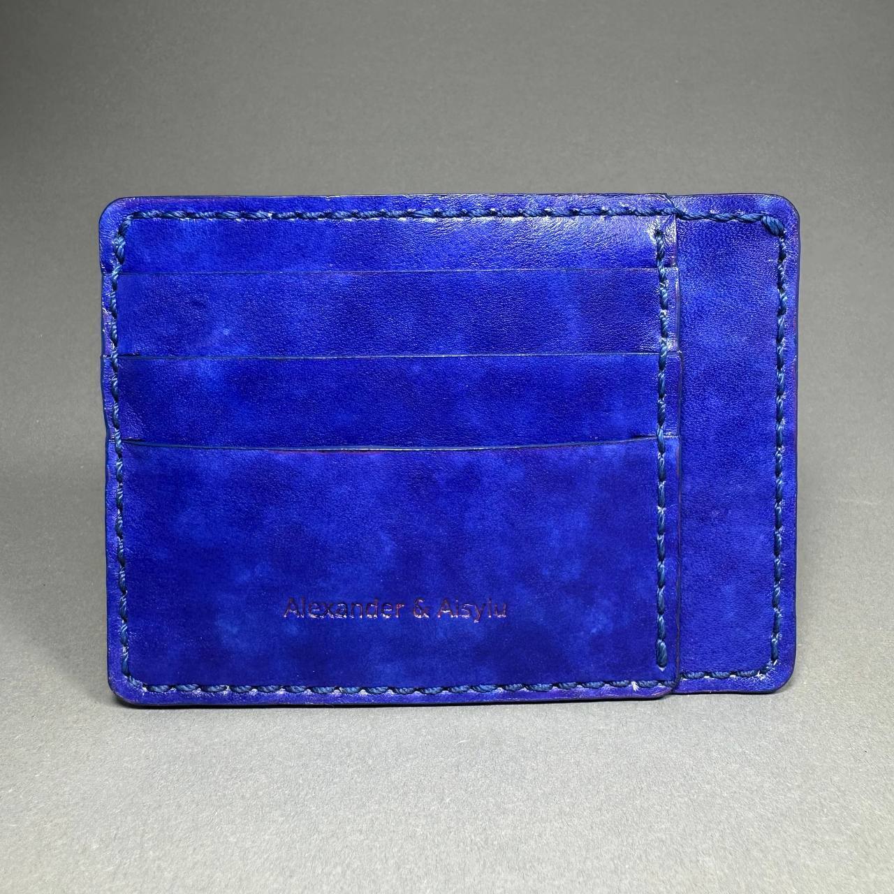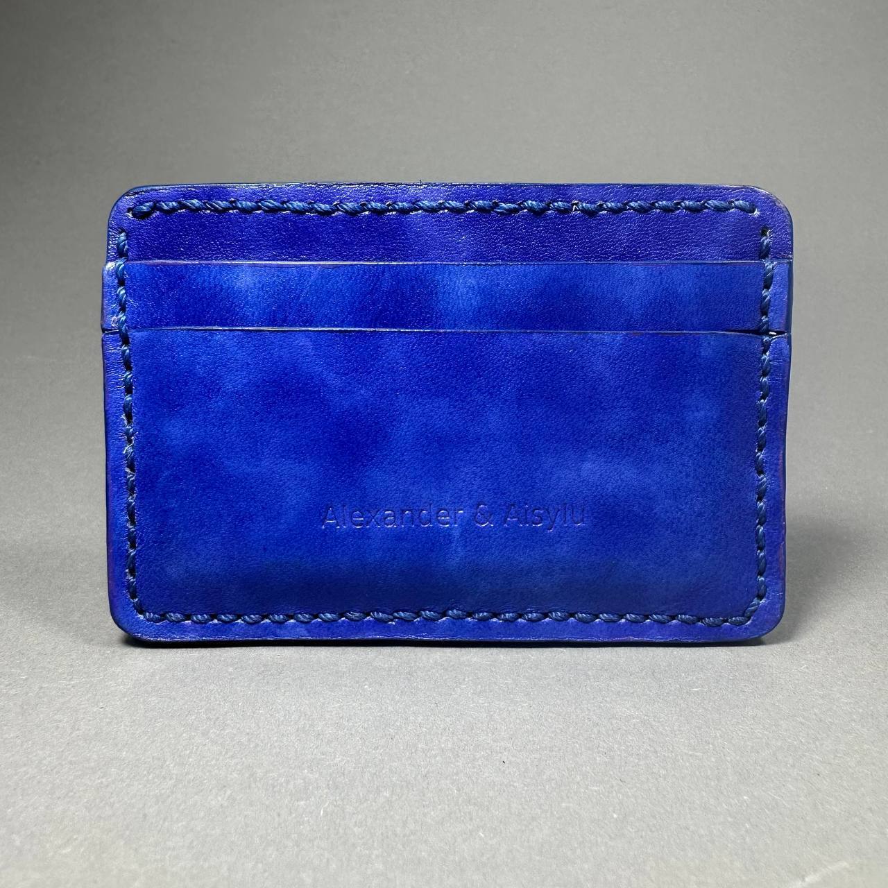 Картхолдер синий ручной работы "Art line. Sapphirine" - на 4 карт из натуральной кожи (КРС), ручной шов