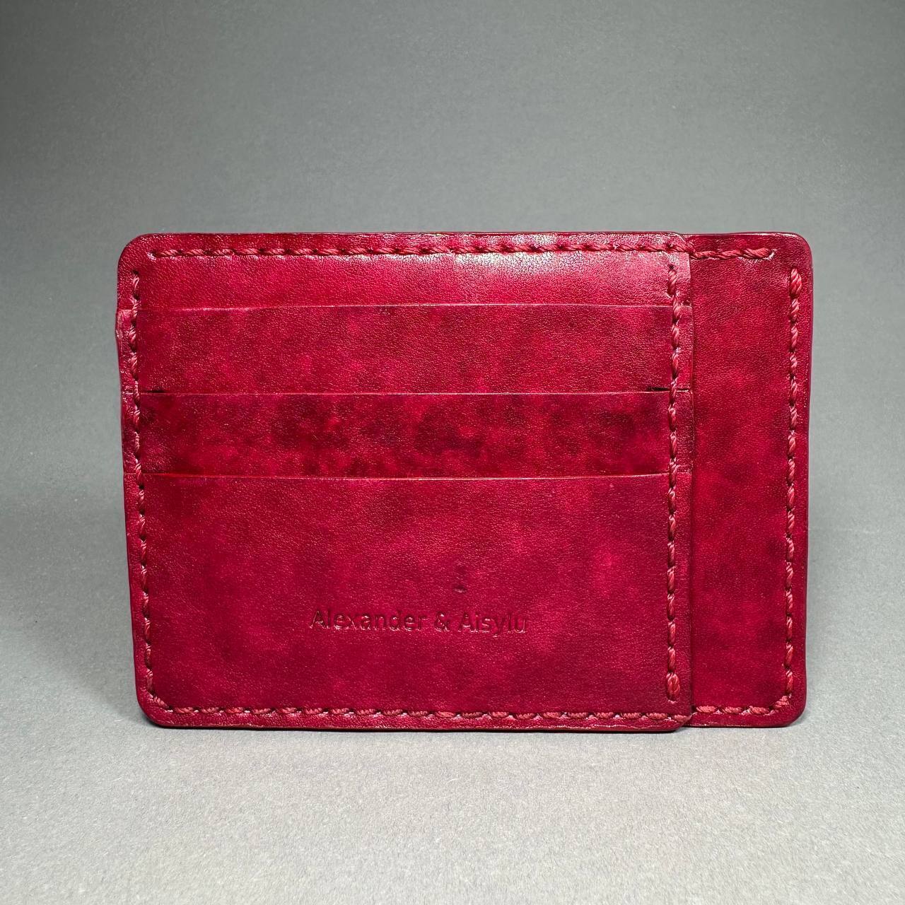 Женский красный картхолдер "Your flame" - ручной работы из натуральной кожи (КРС), ручной шов