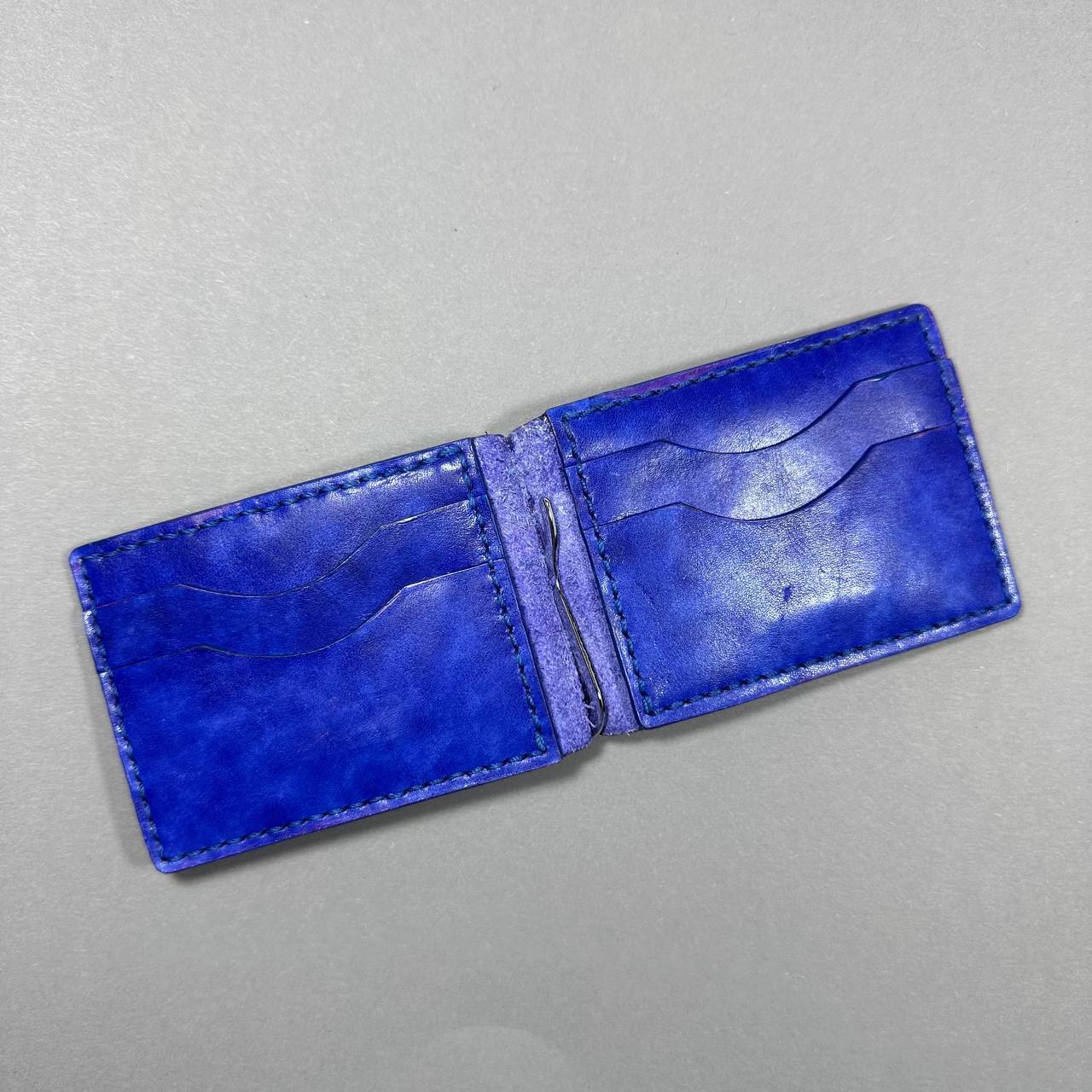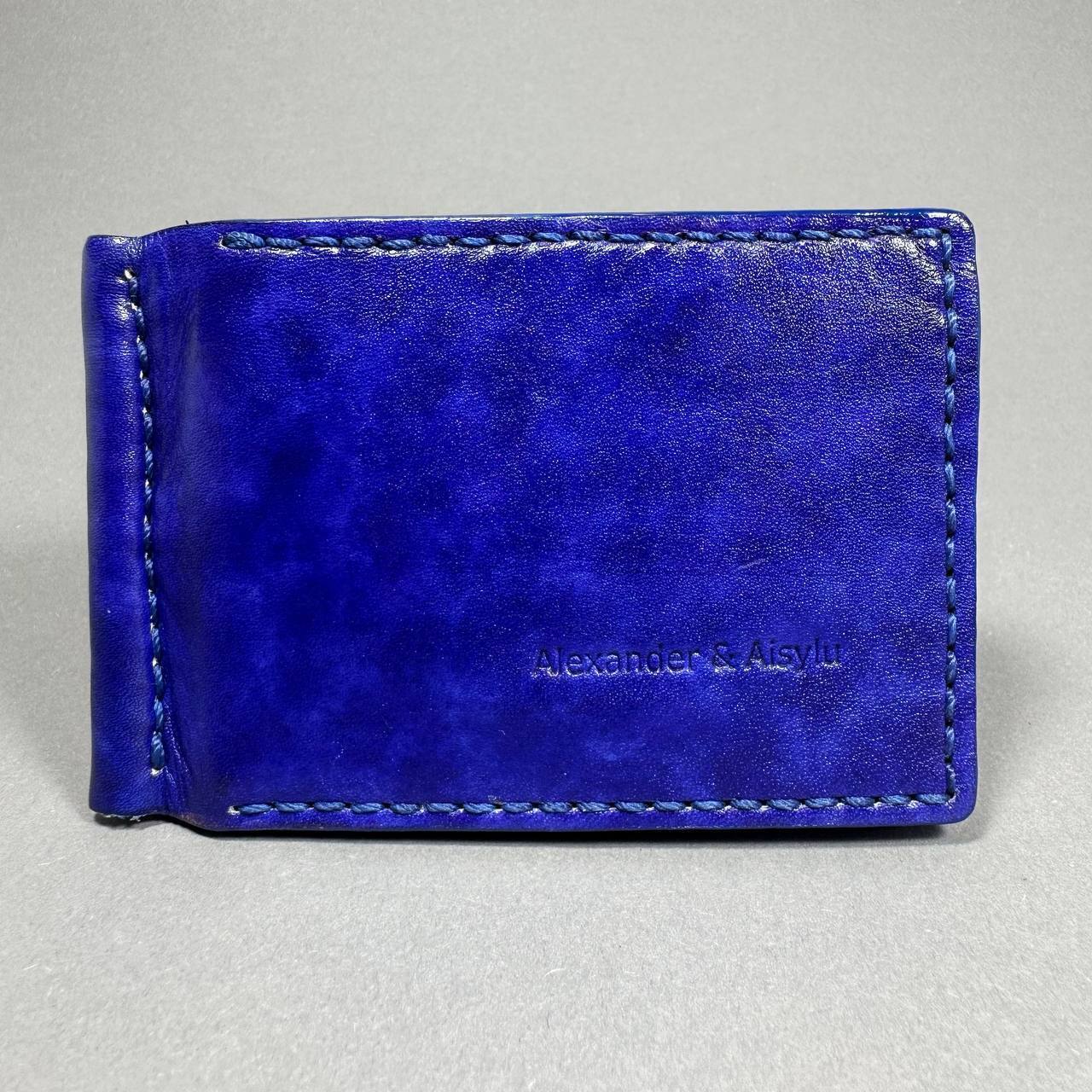 Мужской зажим для денег синий ручной работы "Art line. Sapphirine" - из натуральной кожи (КРС), ручной шов