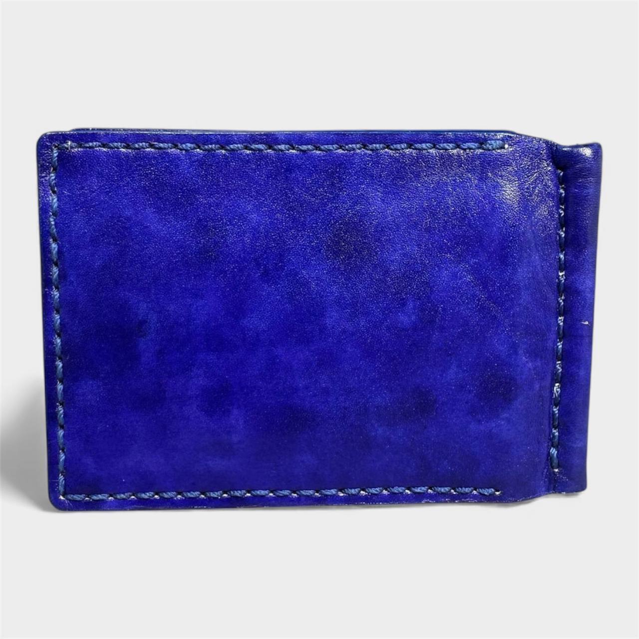 Зажим для денег "Портофино" из натуральной кожи синего цвета