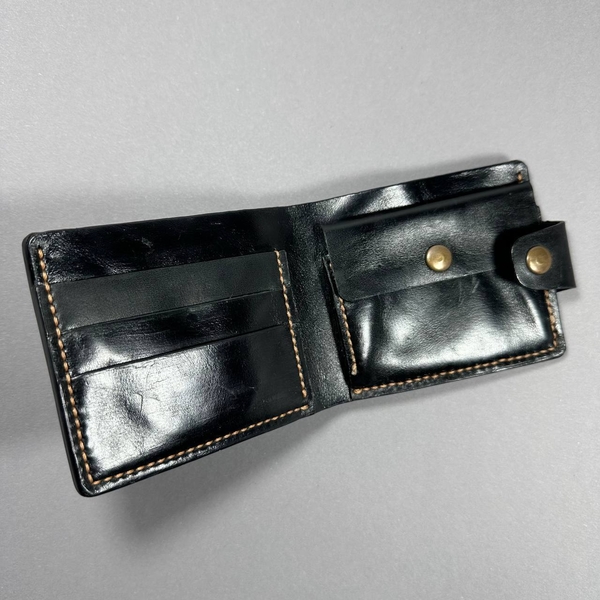 Картхолдер черный "Buffalo" мини - ручной работы из натуральной кожи (КРС) с кармашком для купюр, ручной шов