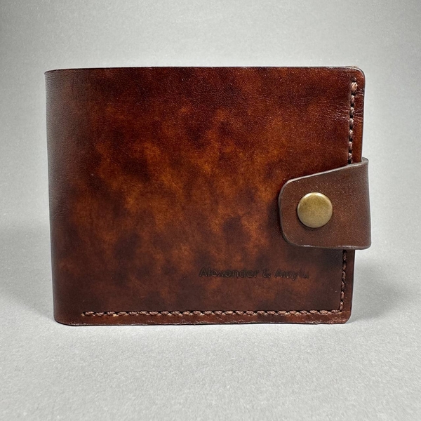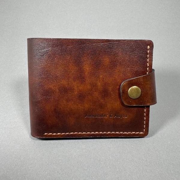 Мужское коричневое портмоне, кошелек "Brutal man. Max" - ручной работы из натуральной кожи (КРС), ручной шов