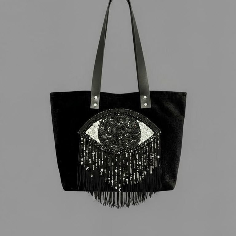 Женская сумка ручной работы "Premiere" из черного бархата с фермуаром и ручной вышивкой