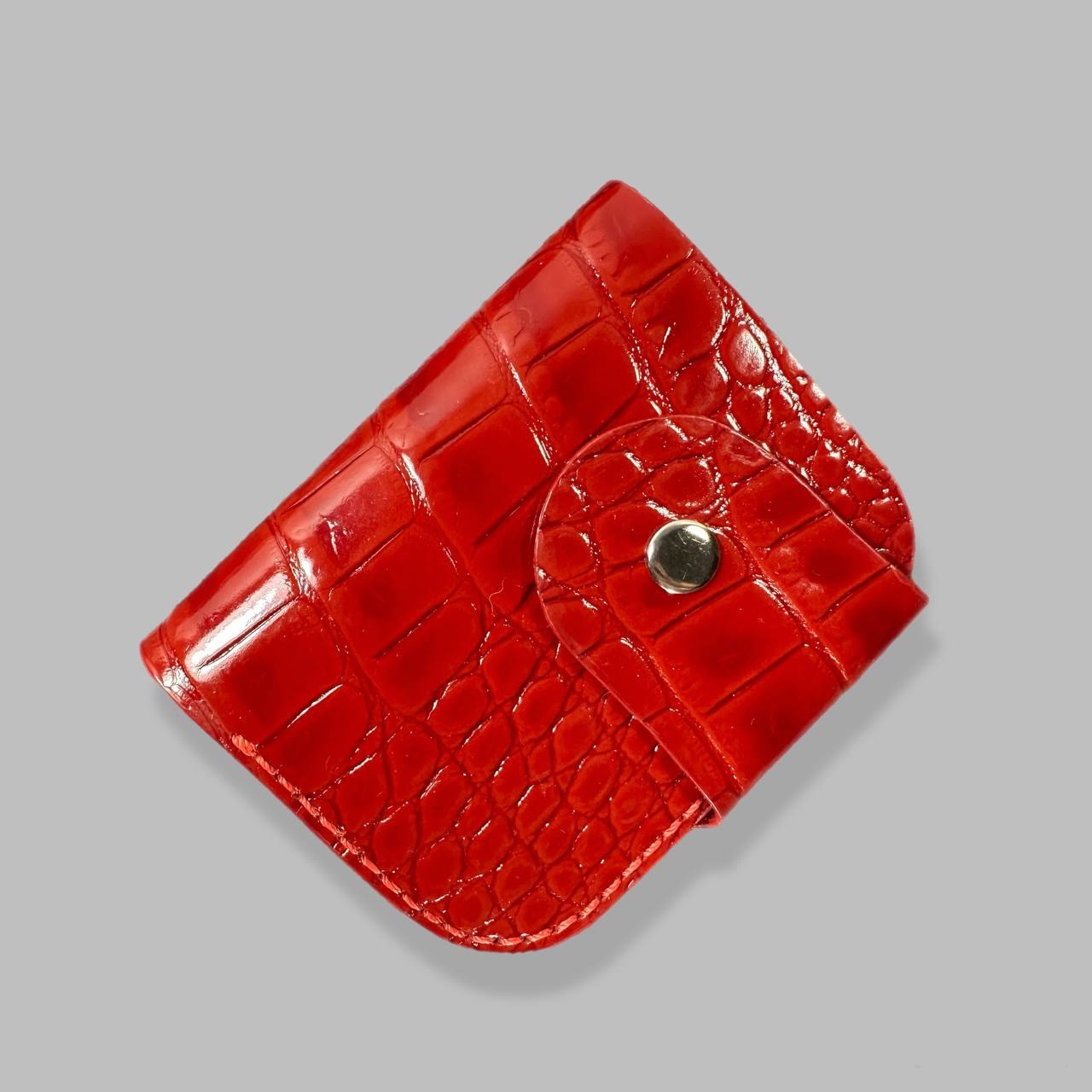 Женский зиппер/клатч, портмоне «Passion» ручной работы из натуральной лакированной кожи (КРС) под аллигатора красного цвета
