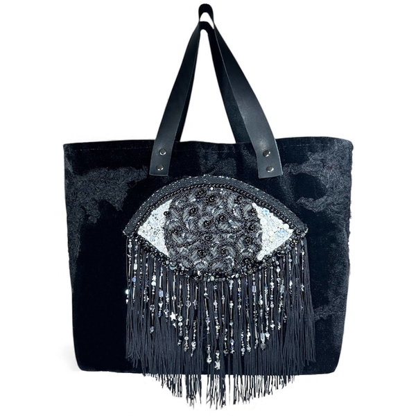 Женская сумка ручной работы "Chicago" из красного бархата с ручной вышивкой, бахрамой с фермуаром