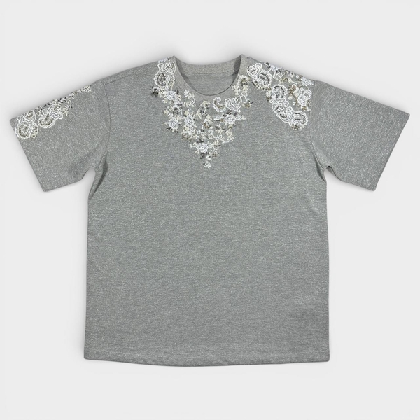 Женская футболка с кружевом и вышивкой "Бэлла"