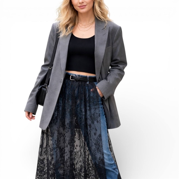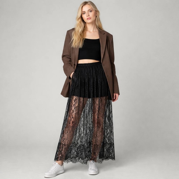 Юбка-килт из черного гипюра с вышивкой "Танго"