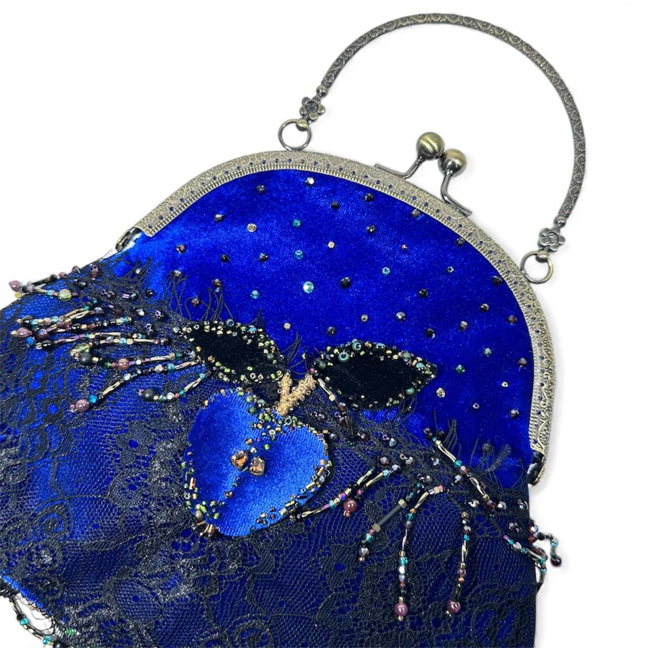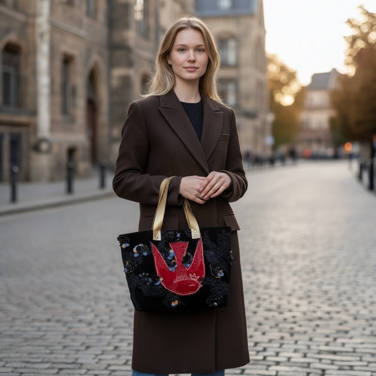 Женская сумка "Жар птица" из черного бархата с ручной вышивкой