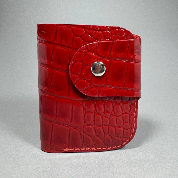 Женское портмоне «Passion» ручной работы из натуральной лакированной кожи (КРС) под аллигатора красного цвета, ручной шов